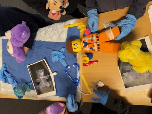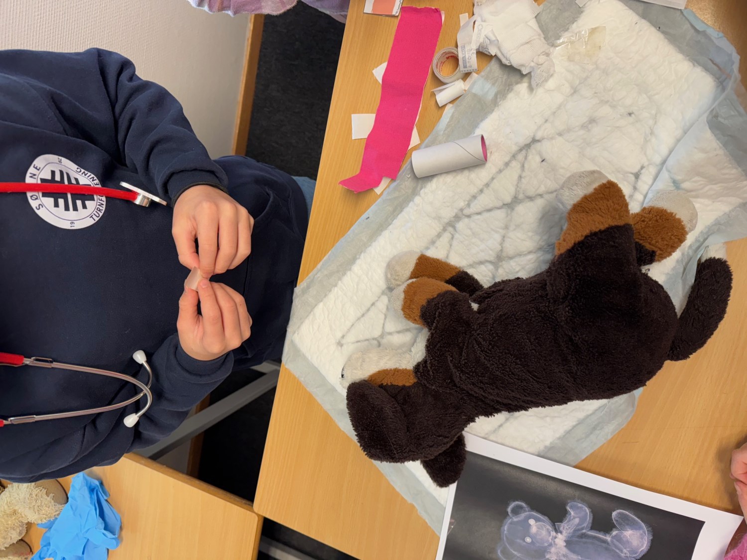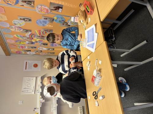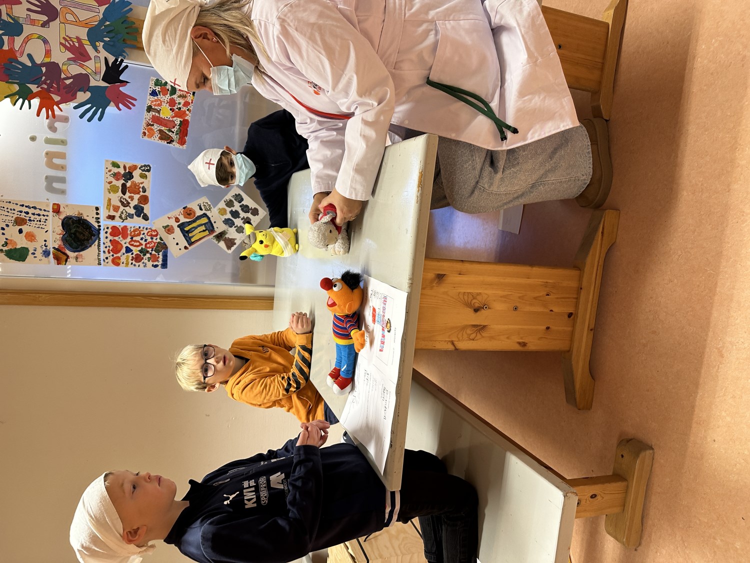 I dag har vi hatt bamsesykehus på 2.trinn. Elevene forberedte dagen i går. De laget plakater slik at vi kunne vite hvor de ulike avdelingene på sykehuset var. Vi hadde venterom, eget røntkenrom, behandlingsrom, undersøkelsesrom og apotek. De fikk lov å omorganisere hele klasserommet og være kreative. Utstyret ble lagt på plass på riktig rom og elevene gledet seg veldig. Fredagen kom og bamsene lå i sekken. Først måtte de lage en EPIKRISE av pasientene sine (bamsene) og notere viktige ting ned slik at behandlingene kunne gjennomføres. Bamsene måtte ta rønktenbilder og gå gjennom undersøkelser for å finne riktig behandling. Det var mange som dessverre hadde brekt noe og måtte ha bandasje. Andre fikk tatt ulike vaksiner og noen måtte gå på sterke smertestillende. Dette fikk de tak i ved å lage en resept og kjøpe på apoteket. Elevene var engasjerte og kreative i sin lek med bamsen. Kjedelig var det når vi måtte avslutte. Vi legger ved noen bilder, kos dere.