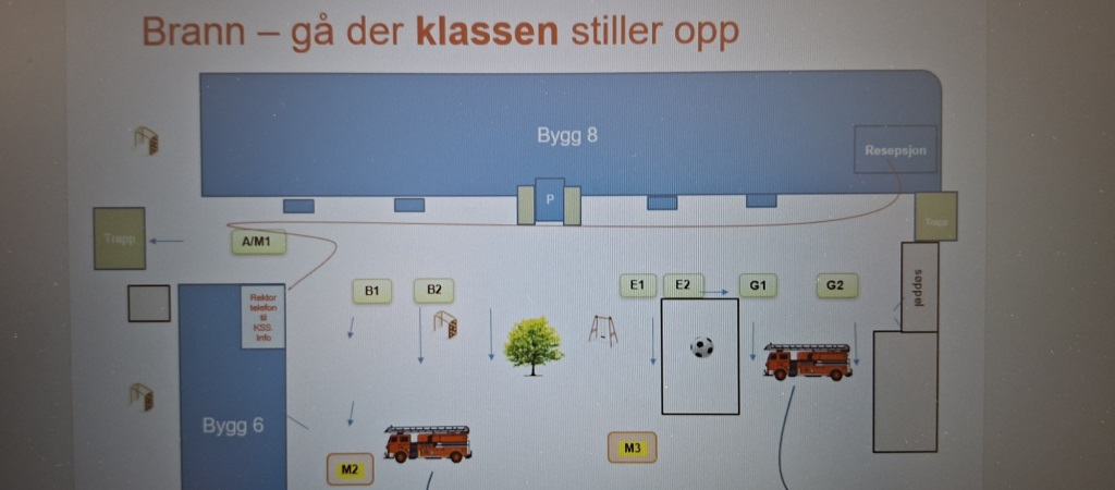 3. Alarm i friminutt: Kontaktlærer går ut, samler/ teller