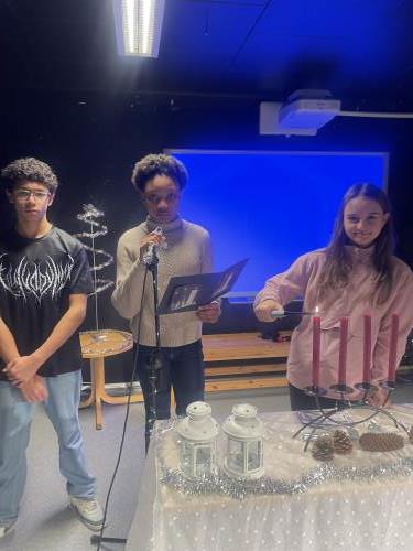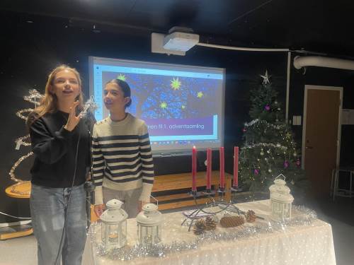 I dag hadde vi en superkoselig første adventssamling, og for mange av Mottaksskolens elever var det første gang de opplevde denne norske tradisjonen. Ungdommene hadde lagt ned en imponerende innsats i å pynte til samlingen, og sammen sang vi «Tenn lys» og «Vi tenner våre lykter» i et fint fellesskap. Nå ser vi fram til en adventstid full av gode opplevelser!