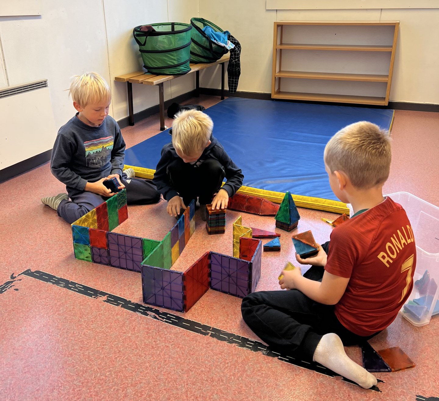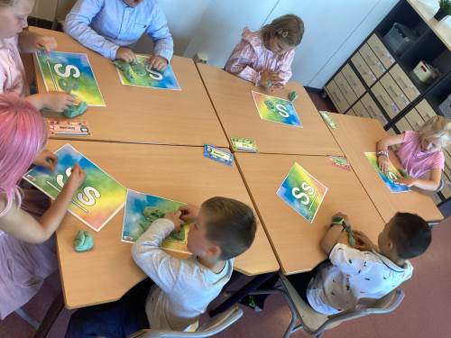 Dei første dagane har me sunge, leika og brukt tid på å skapa relasjonar, samt verta trygge på den nye kvardagen. Me har allereie rukke å lært oss fire bokstavar. Desse har me har skrive, teikna, forma i kitt og bygd i lego.
