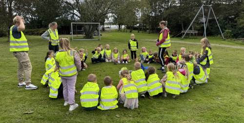 Me har også fått vore på tur med fjorårets 1.klassingar. Desse har no vorte stolte 2.klassingar, og har mykje god erfaring å gje dei nye elevane våre. Dei to førre onsdagane har me øva oss på å vera gode trafikantar og har gått på fine tur - rekkjer til friområdet. Der har me blant anna laga kvepsefeller med gjær, sukker, vatn og zalo. Me måtte testa det ut heile to gonger, og siste gong vart det brak-suksess med mange kvepsar i fellene.