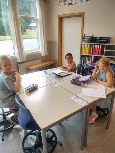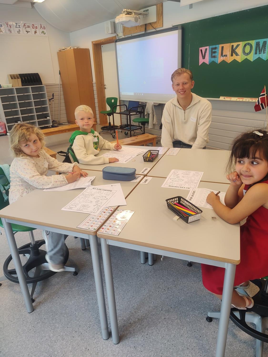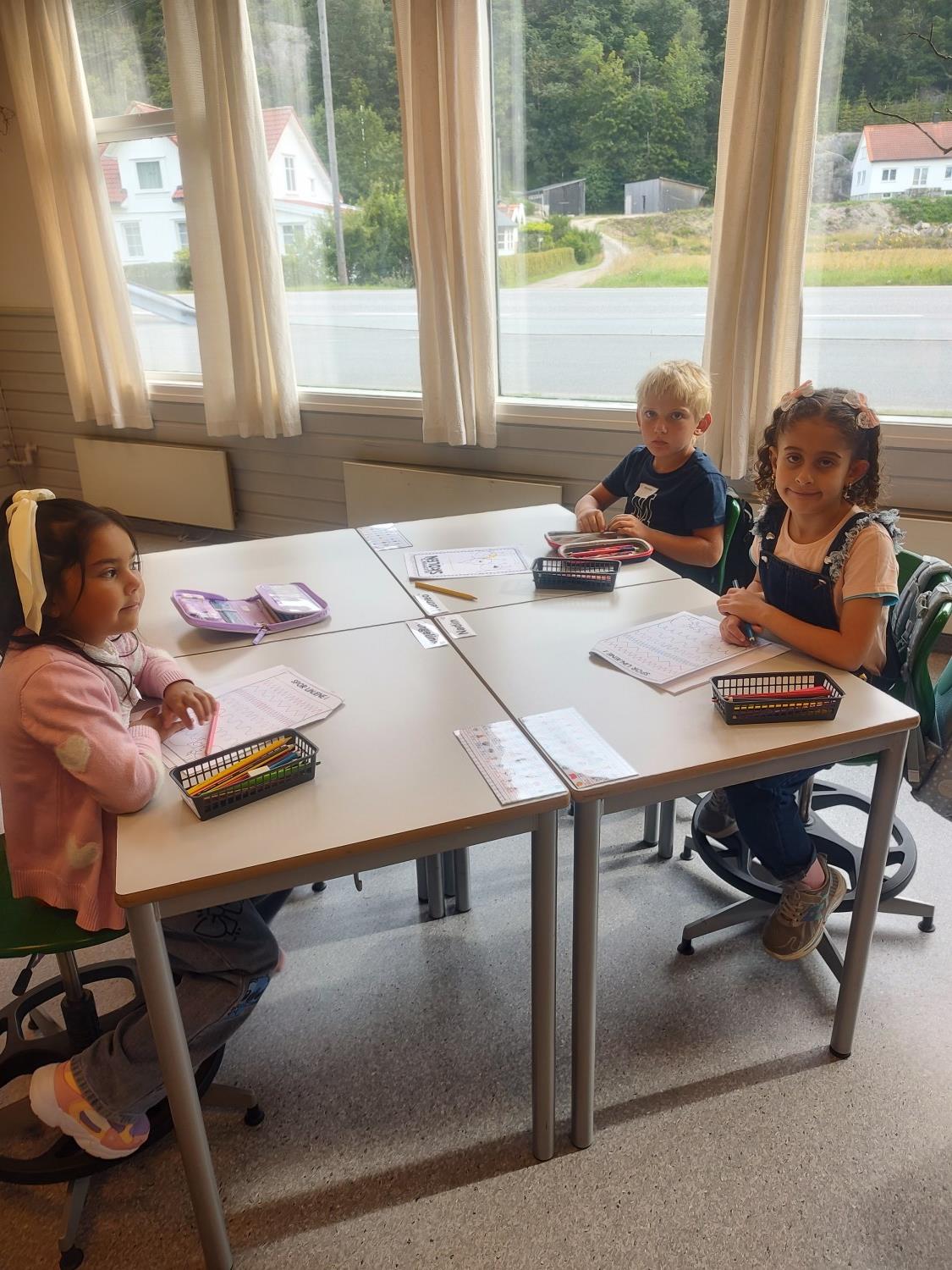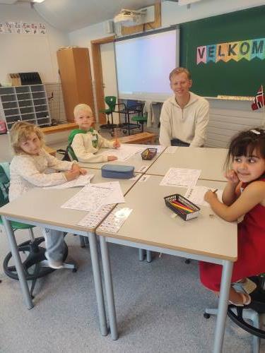 For en flott gjeng med førsteklassinger:) I dag har vi hatt samlingsstund, lest boka om "Geitekillingen som kunne telle til 10", jobbet i arbeidshefter med skoleoppgaver, vært sammen med fadderne våre og lekt masse - både inne og ute:) Takk for en kjempefin første dag, vi gleder oss til fortsettelsen:)