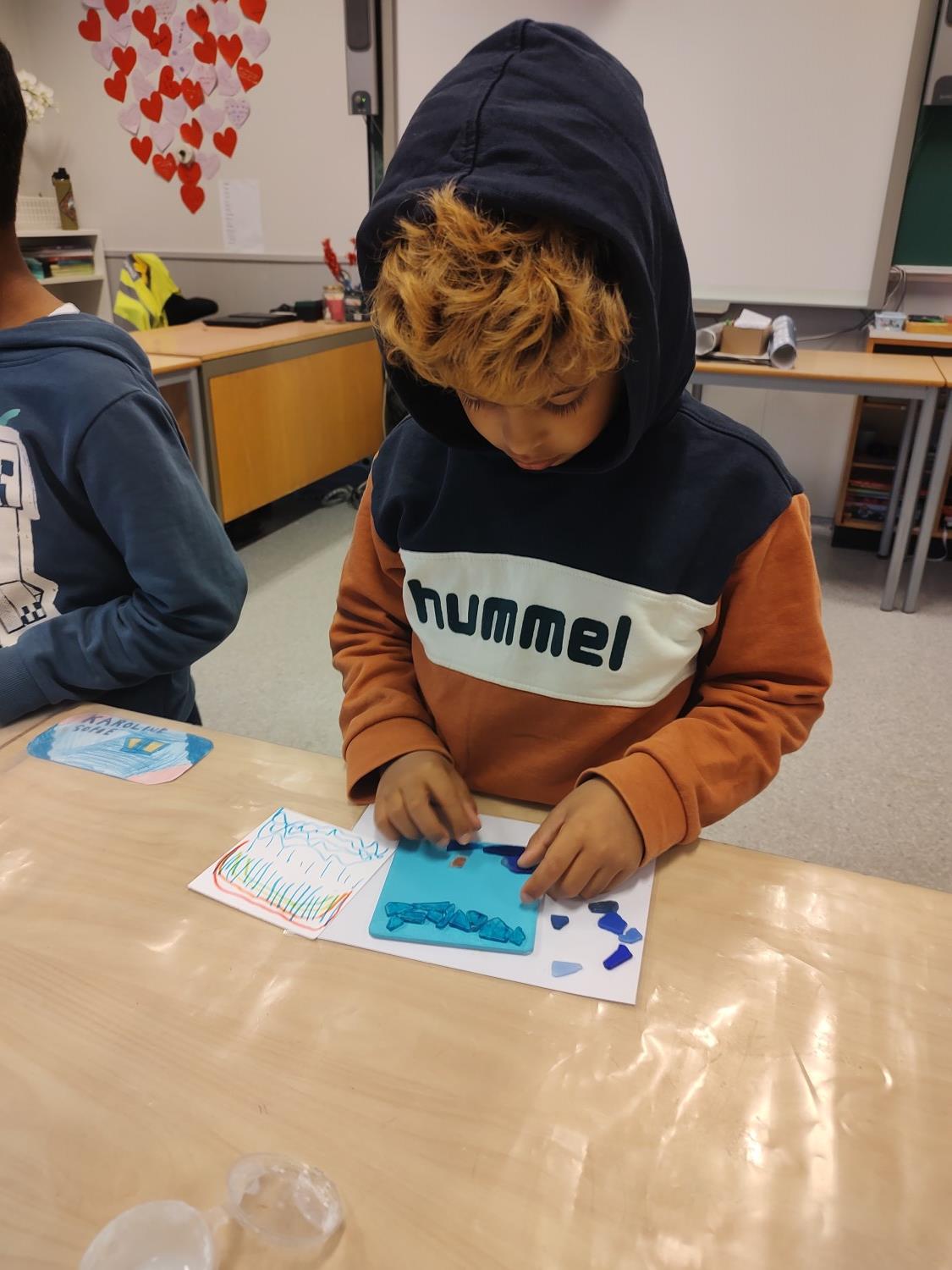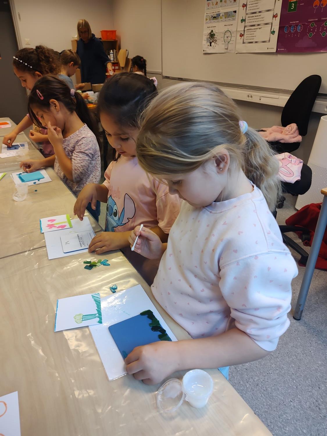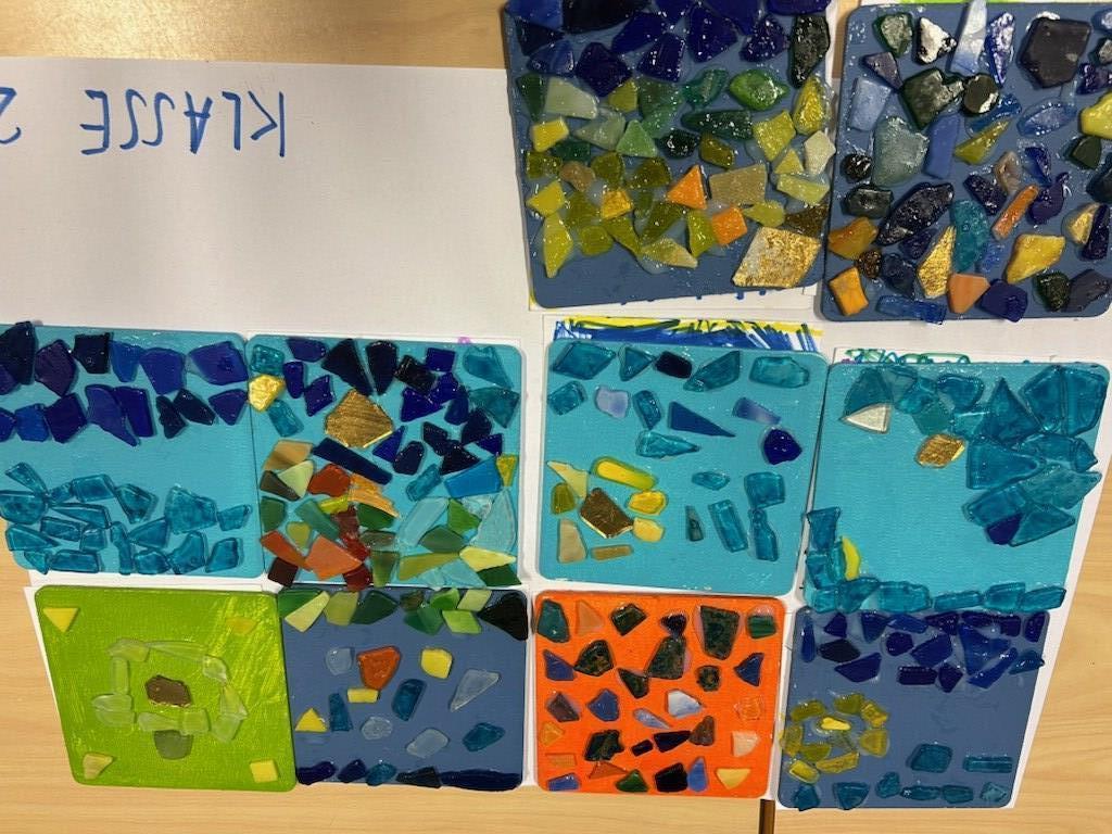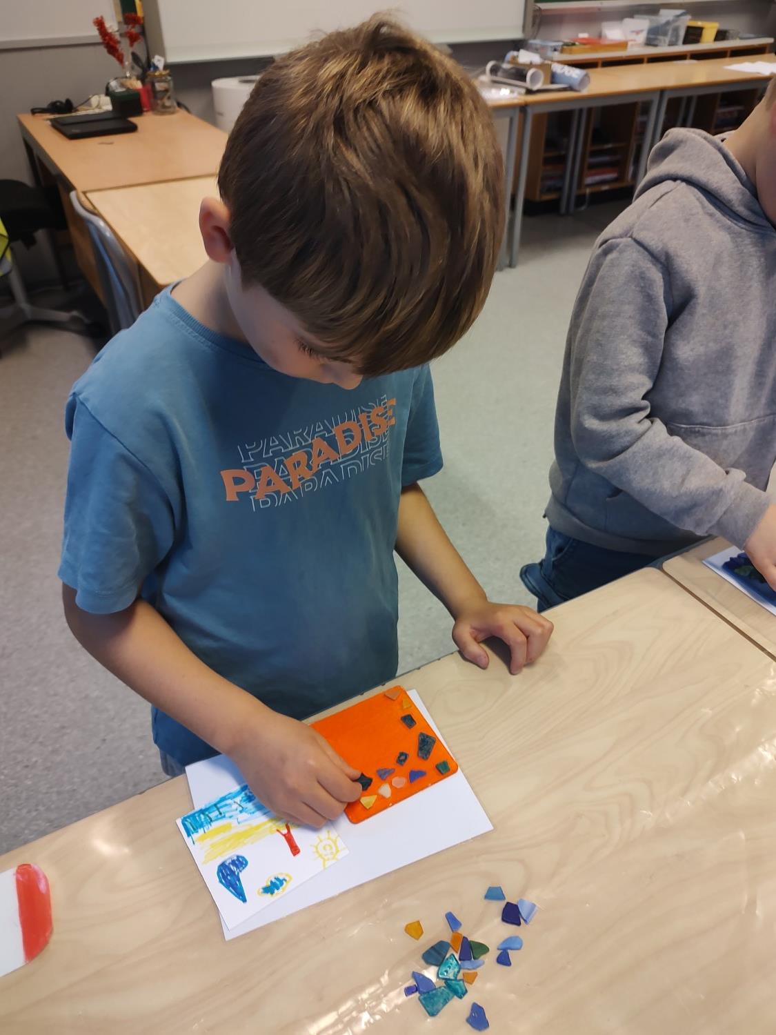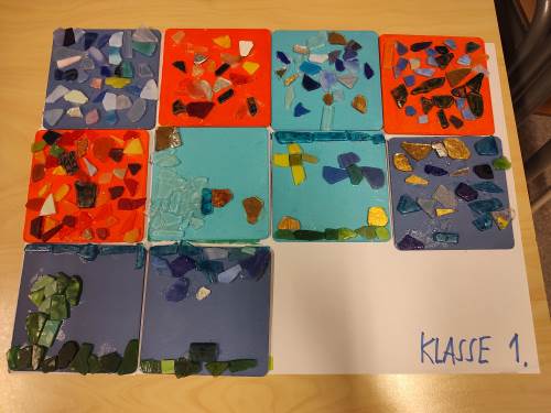 På fredag var vi så heldige å få besøk av kunstneren Anna Berthelsen. Alle fikk lage hvert sitt kunstverk av farget glass. Se på de fine resultatene:)