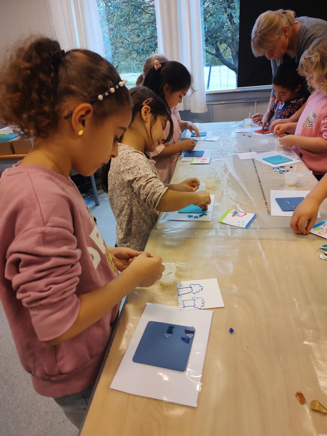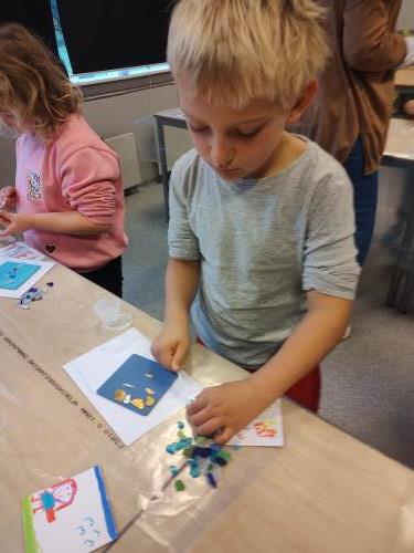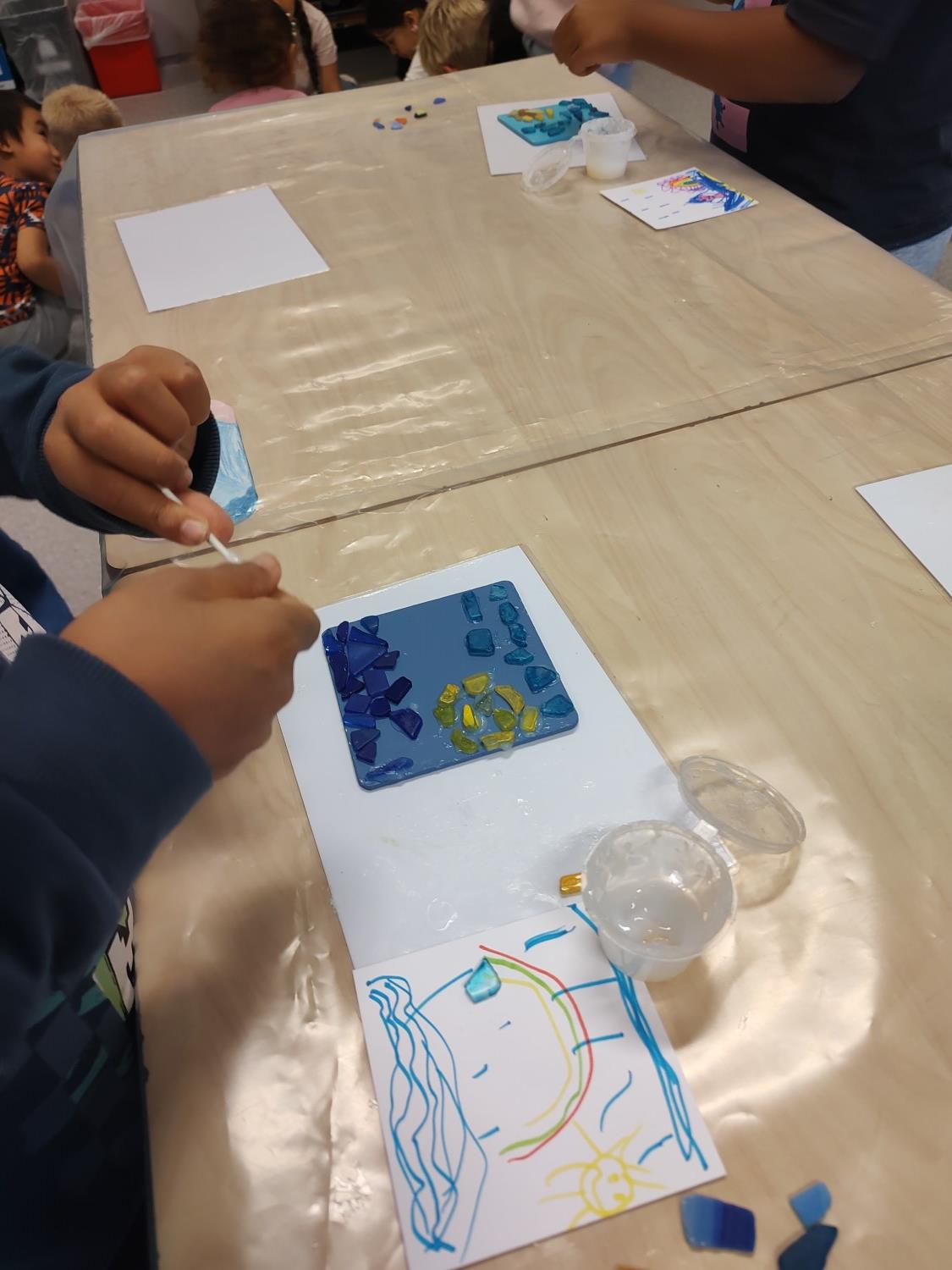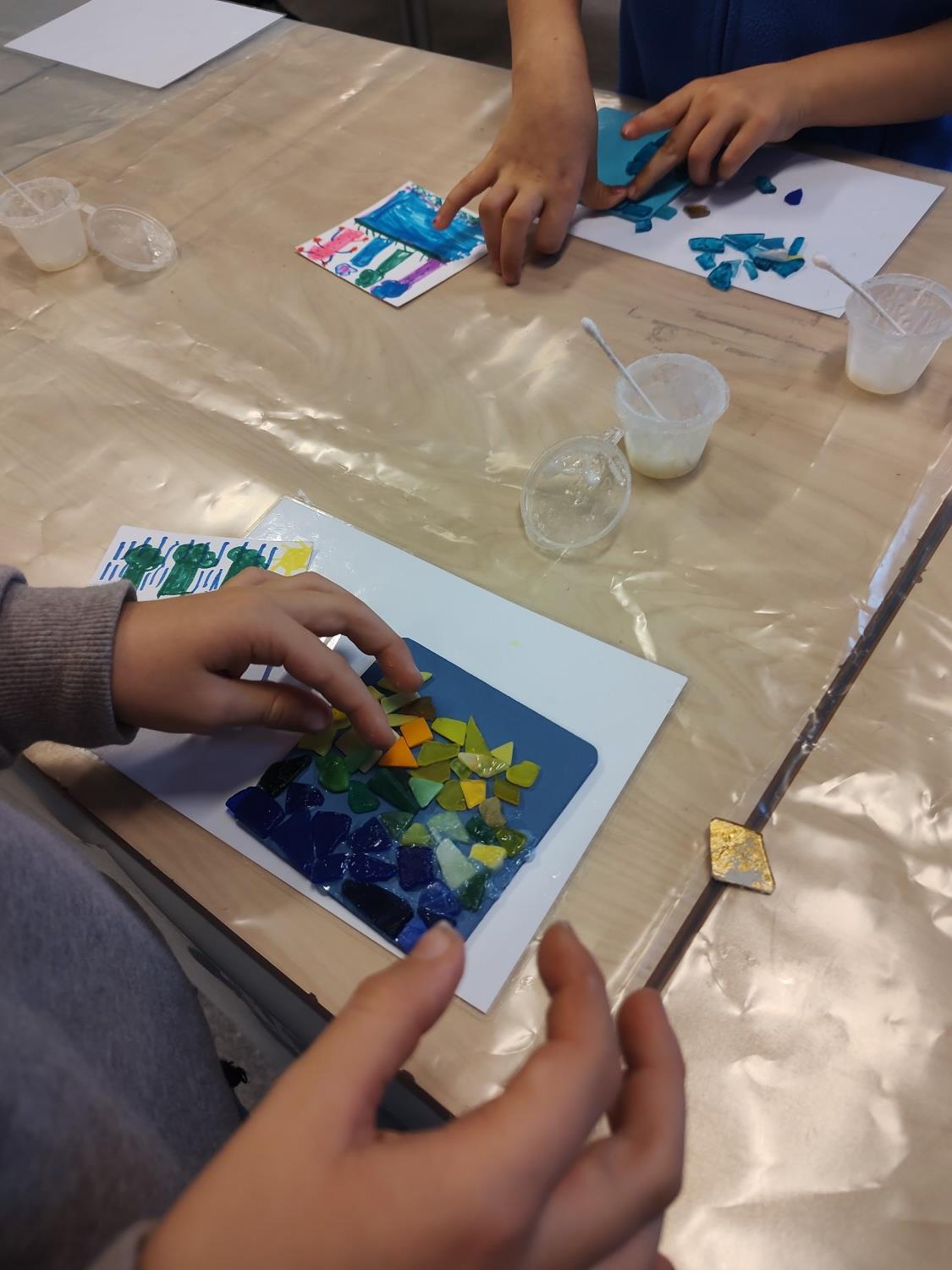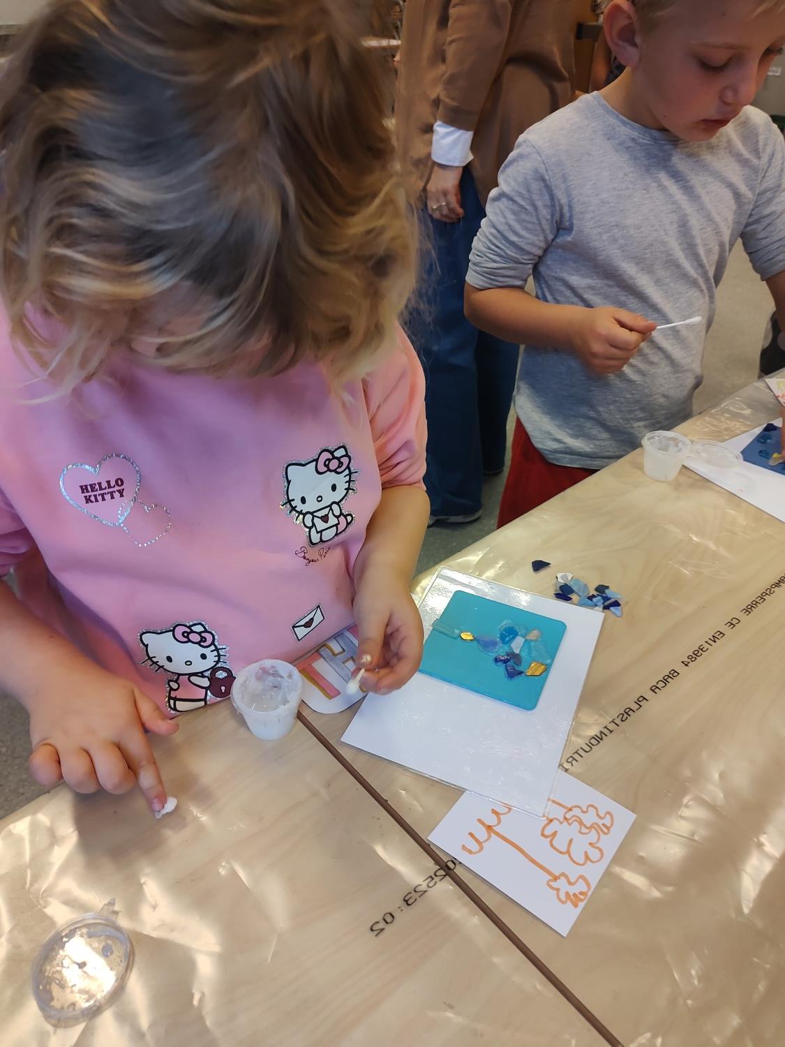 På fredag var vi så heldige å få besøk av kunstneren Anna Berthelsen. Alle fikk lage hvert sitt kunstverk av farget glass. Se på de fine resultatene:)