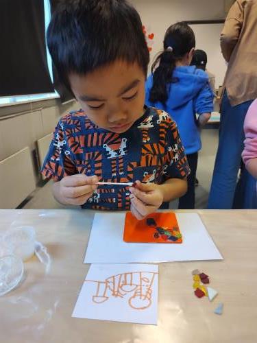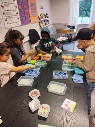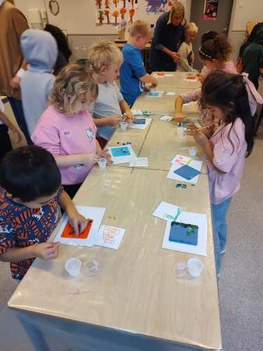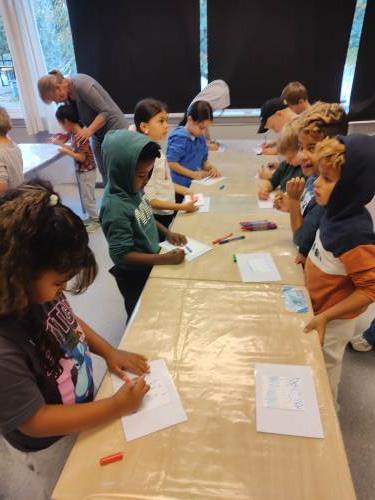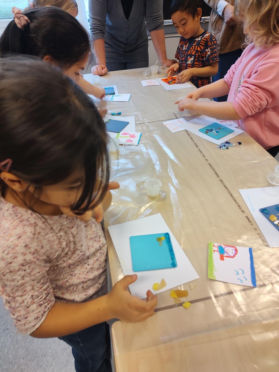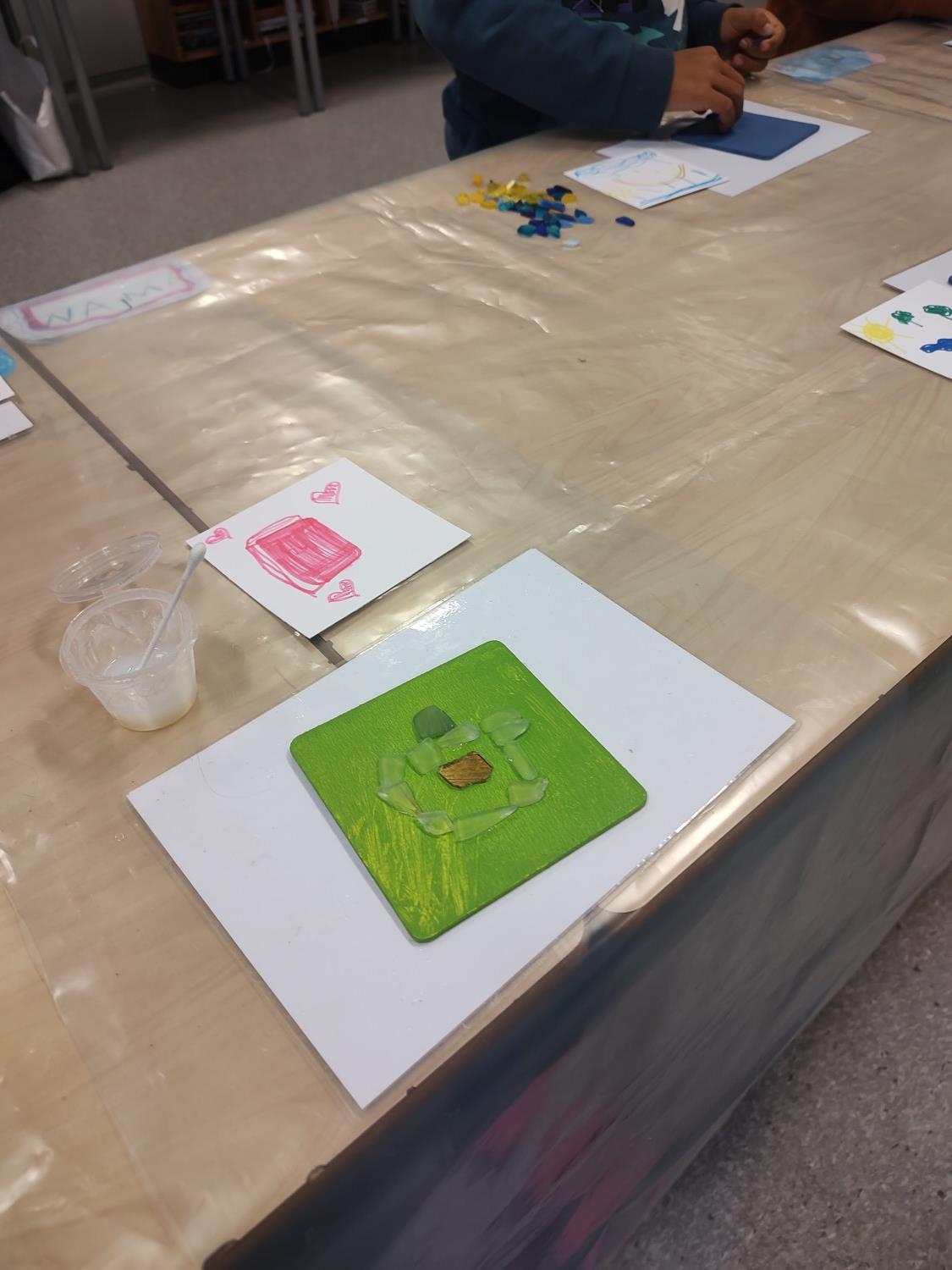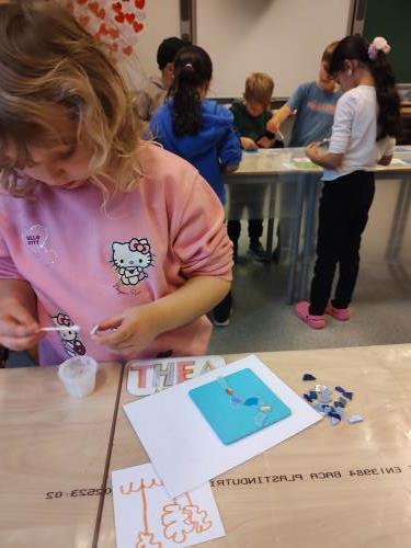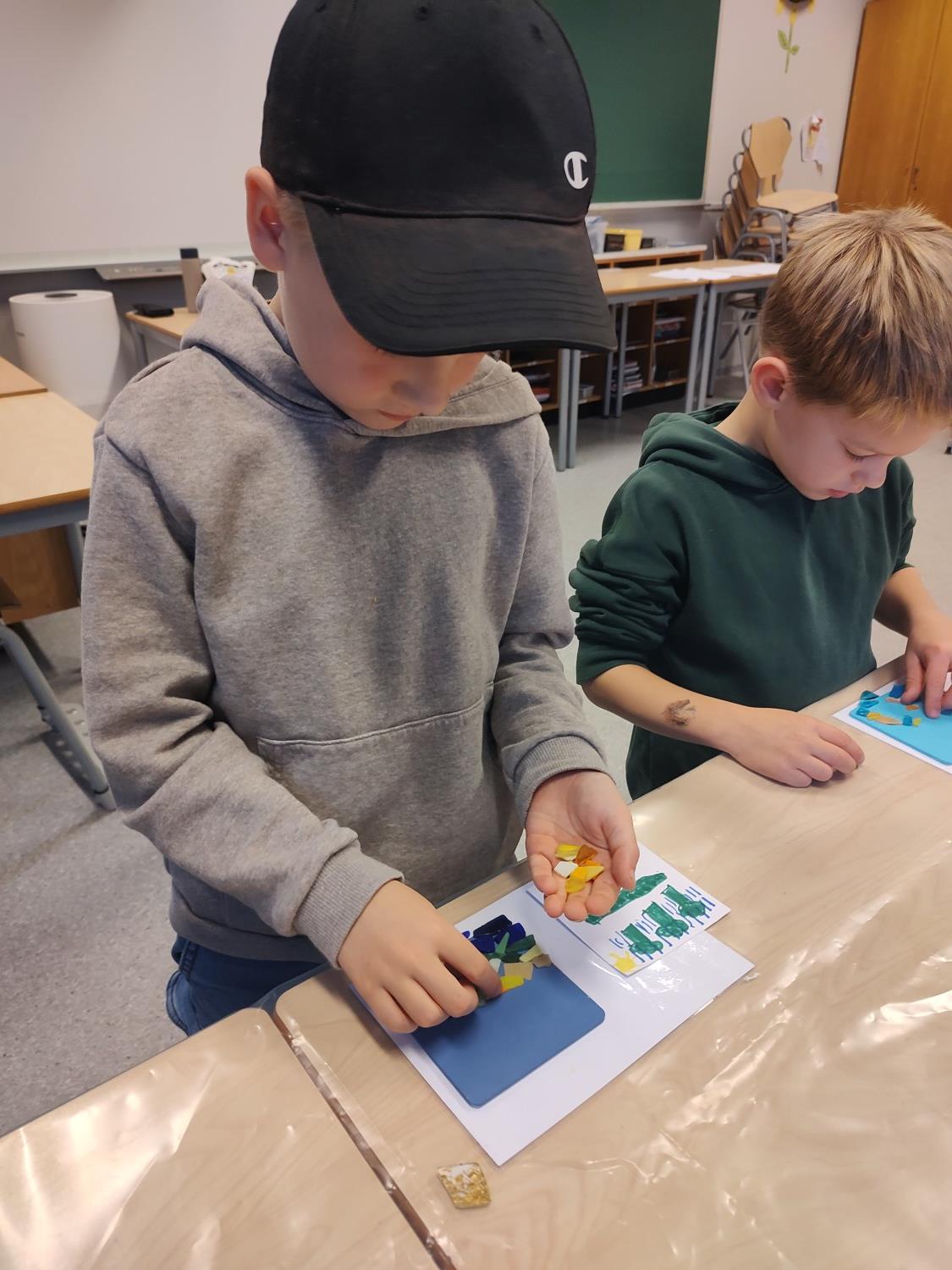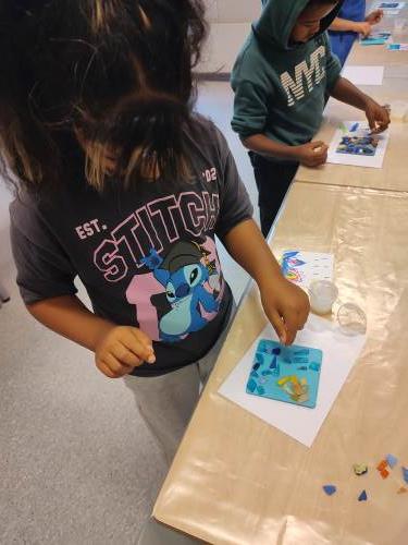 På fredag var vi så heldige å få besøk av kunstneren Anna Berthelsen. Alle fikk lage hvert sitt kunstverk av farget glass. Se på de fine resultatene:)