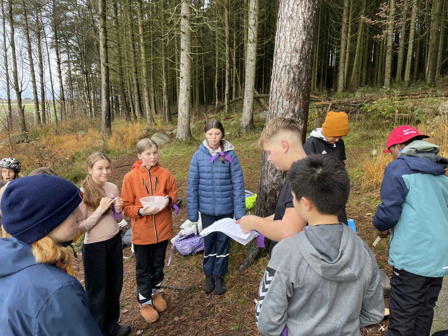 I dag syklet 7.trinn til Vagleskogen. Der ble elevene delt inn i 6 grupper på tvers av klassene. Hver gruppe fikk utlevert et hefte med ulike oppdrag som måtte løses.