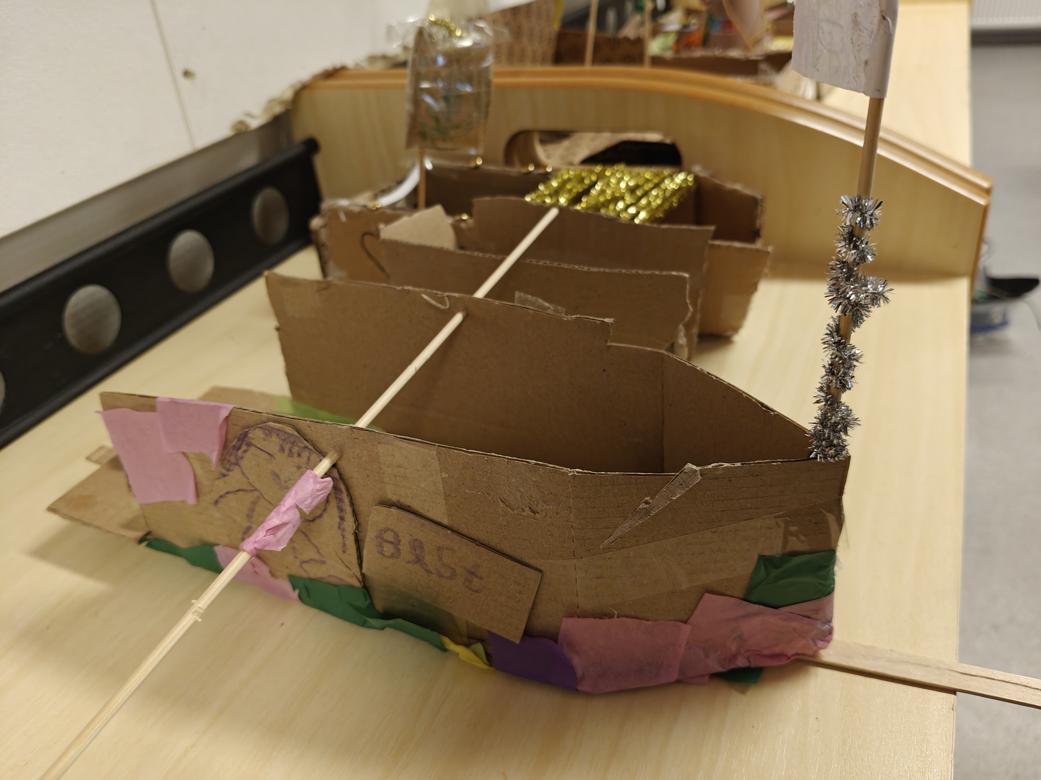Elevene i 2D fikk virkelig vise frem samarbeid og problemløsningevnen sin i dette prosjektet. Elevene skulle bygge en båt sammen. De skulle ha en presentasjon og båten skulle kunne frakte med seg noe over vannet.