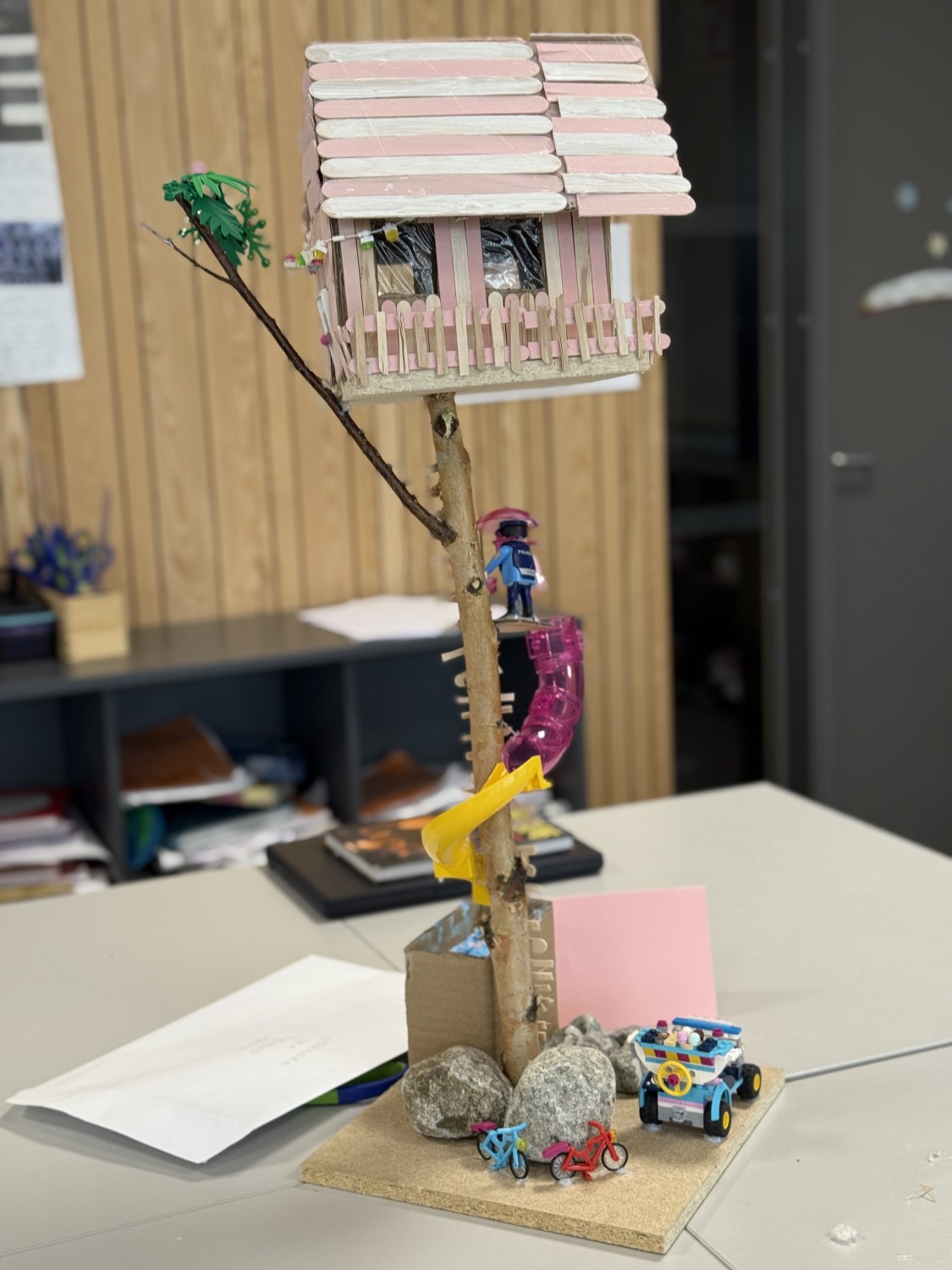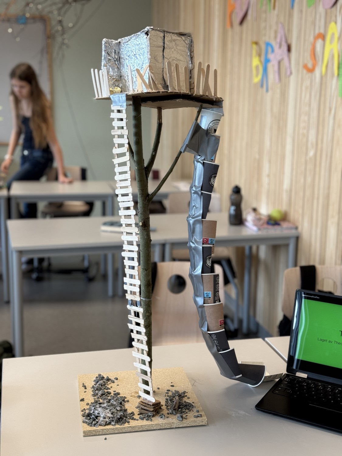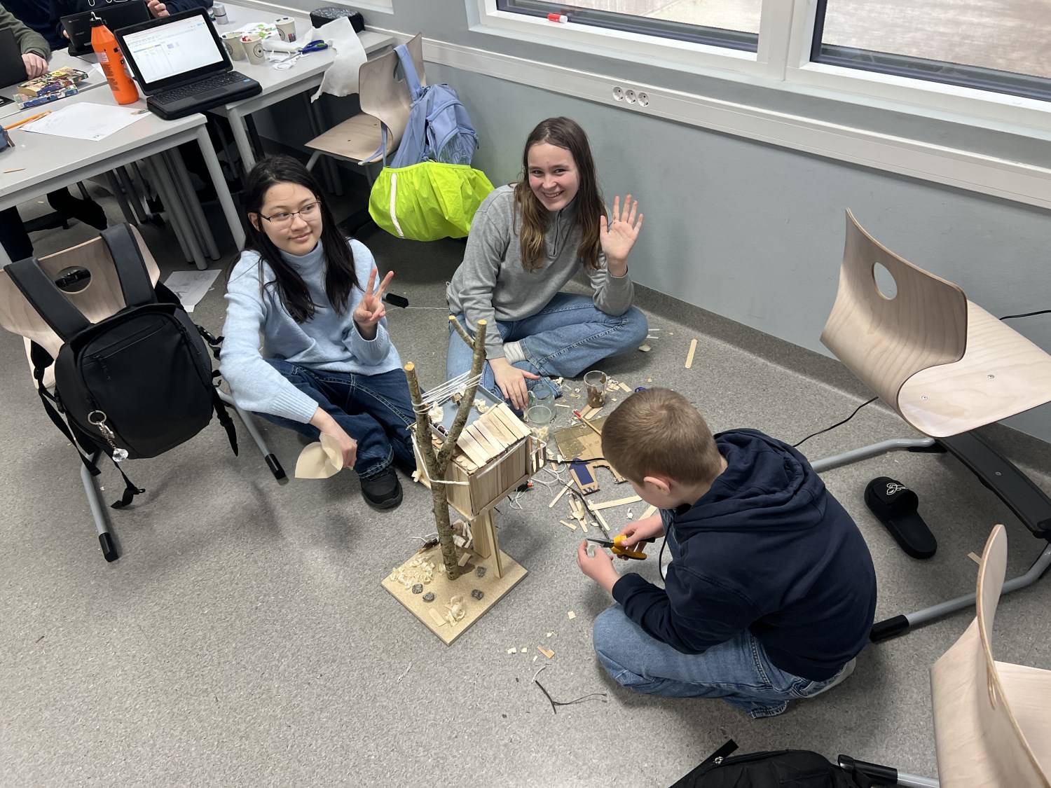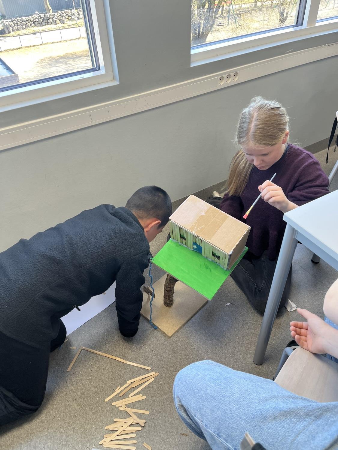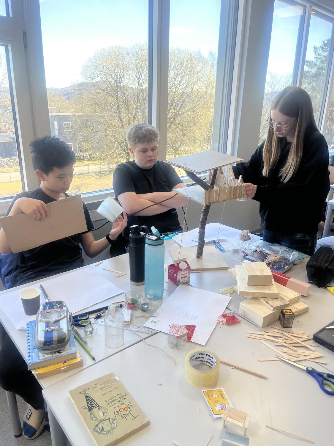 I realfagsfag har elevene på 7.trinn laget flotte trehytter. Mye bra samarbeid, kreative løsninger og engasjerte elever.