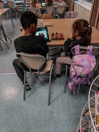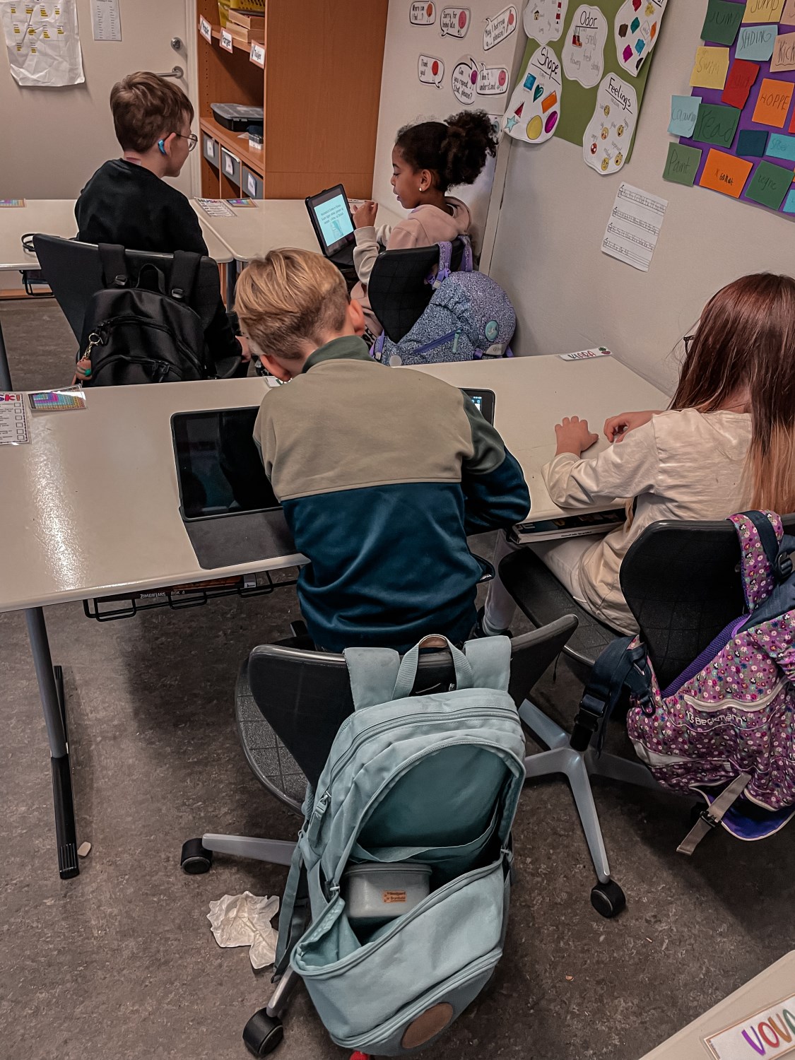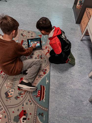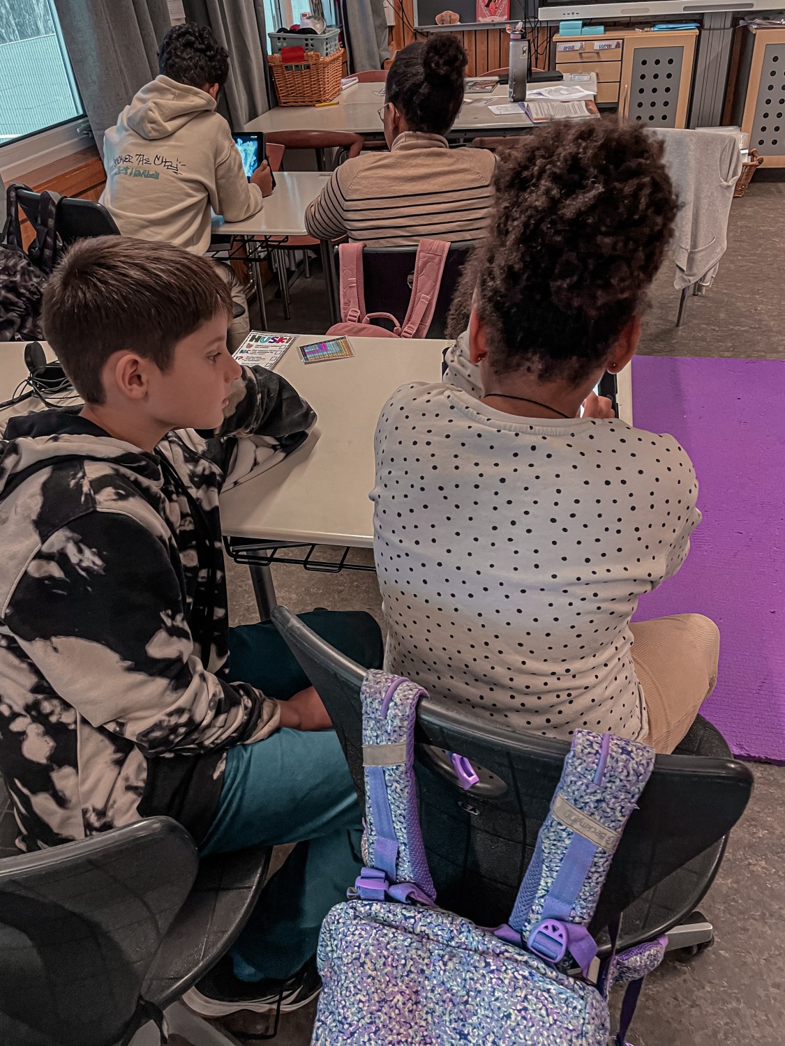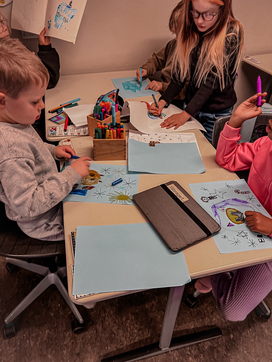 4.klassingene brukte starten av timen til å vise fram og fortelle fadderbarna på 1.trinn om landene sine. De satt sammen i par eller små grupper, viste og fortalte. 4.klassingene syntes det var stor stas å få vise fram, og 1.klassingene syntes det var gøy å se hva de store hadde å fortelle.