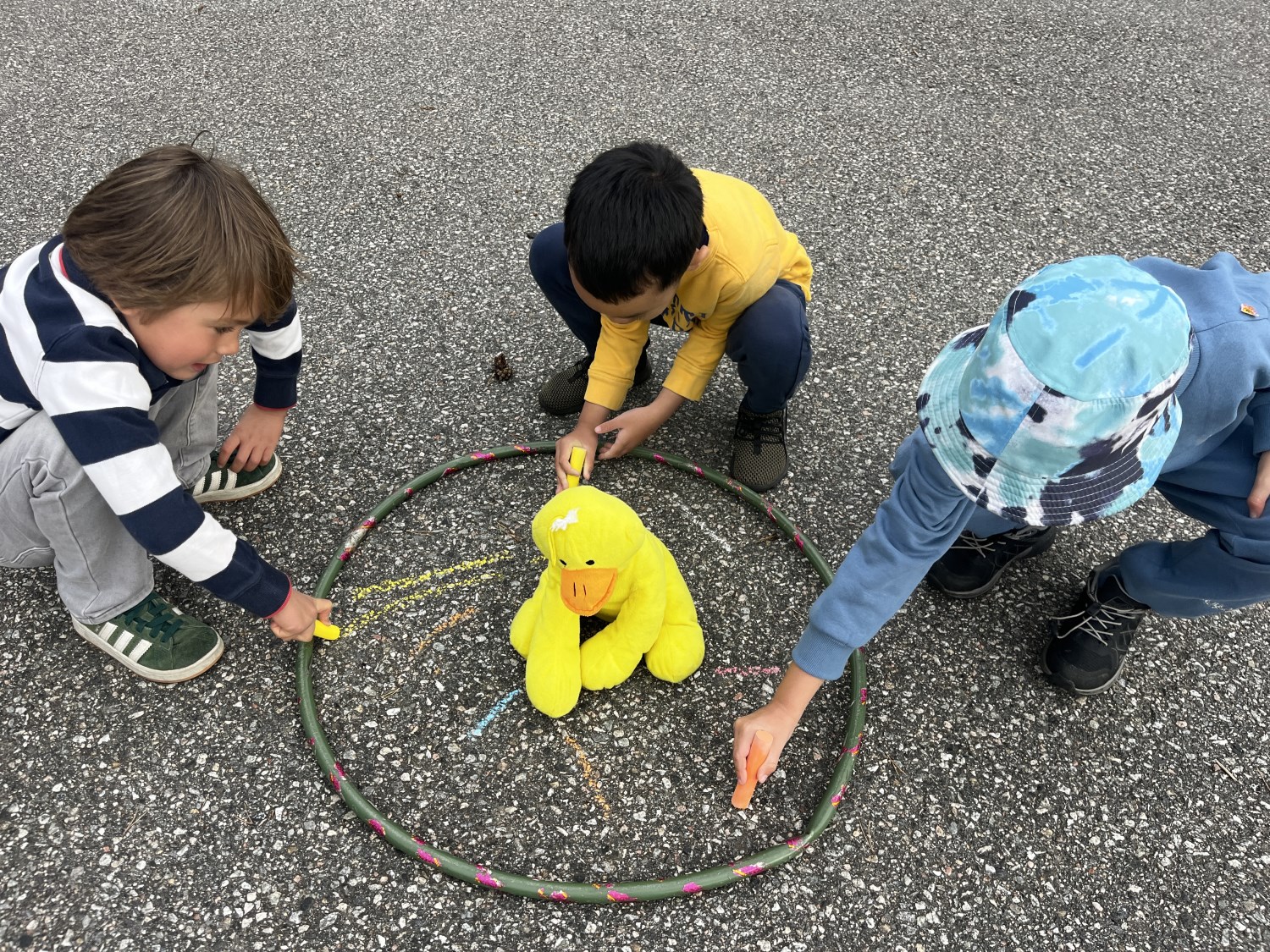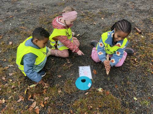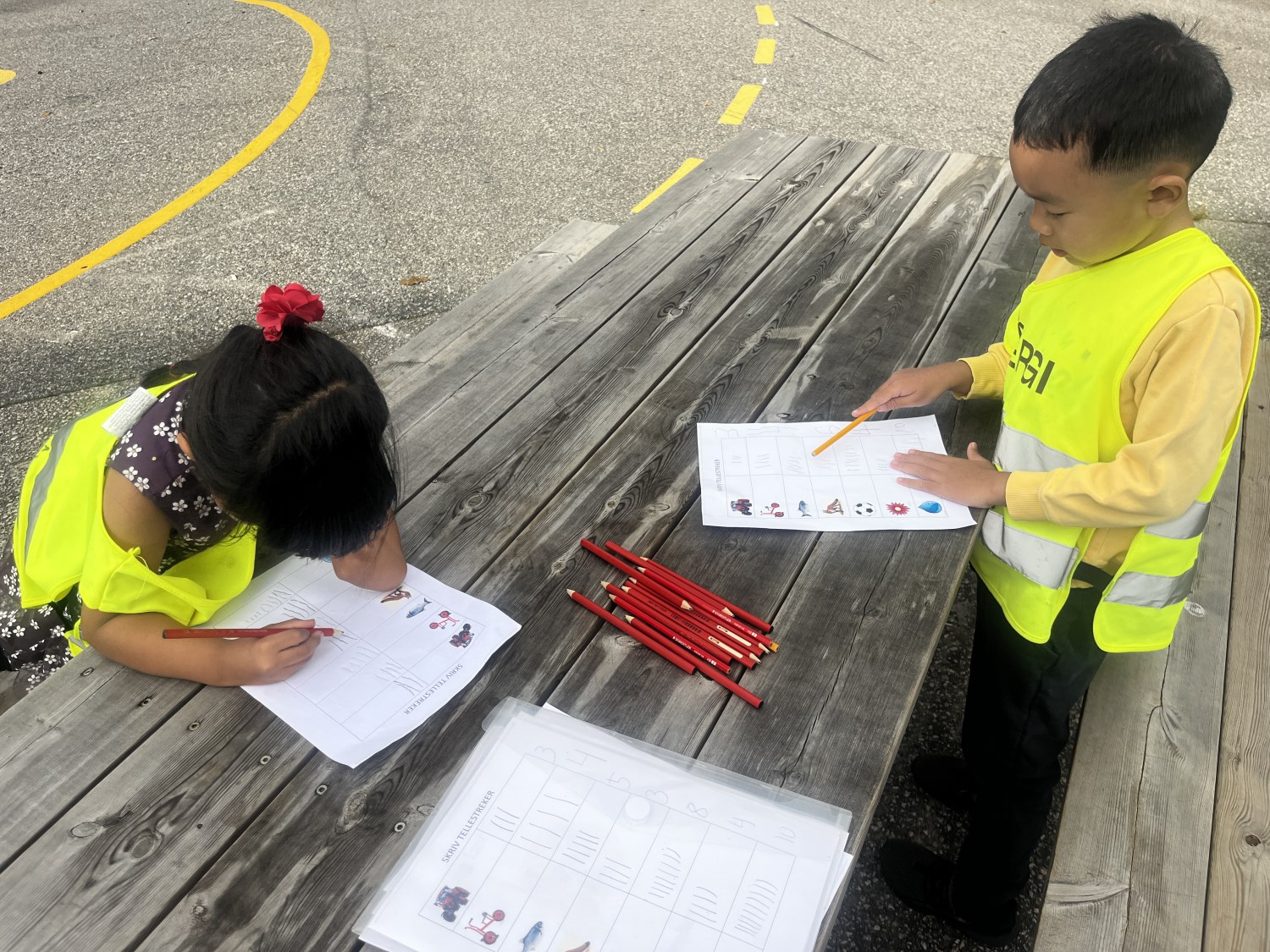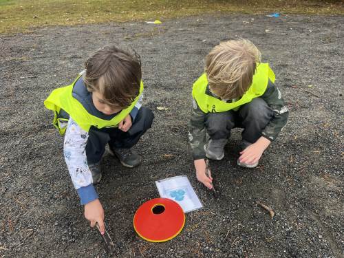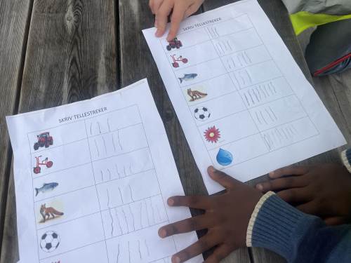 Helt siden skolestart har elevene lært mens de er i bevegelse. Vi har jobbet med tellestreker i matematikk og klappet stavelser i ulike ord i bokstavinnlæringen. Elevene samarbeider og hjelper hverandre, og de smiler og ler. Ja, vi liker glade og aktive barn.