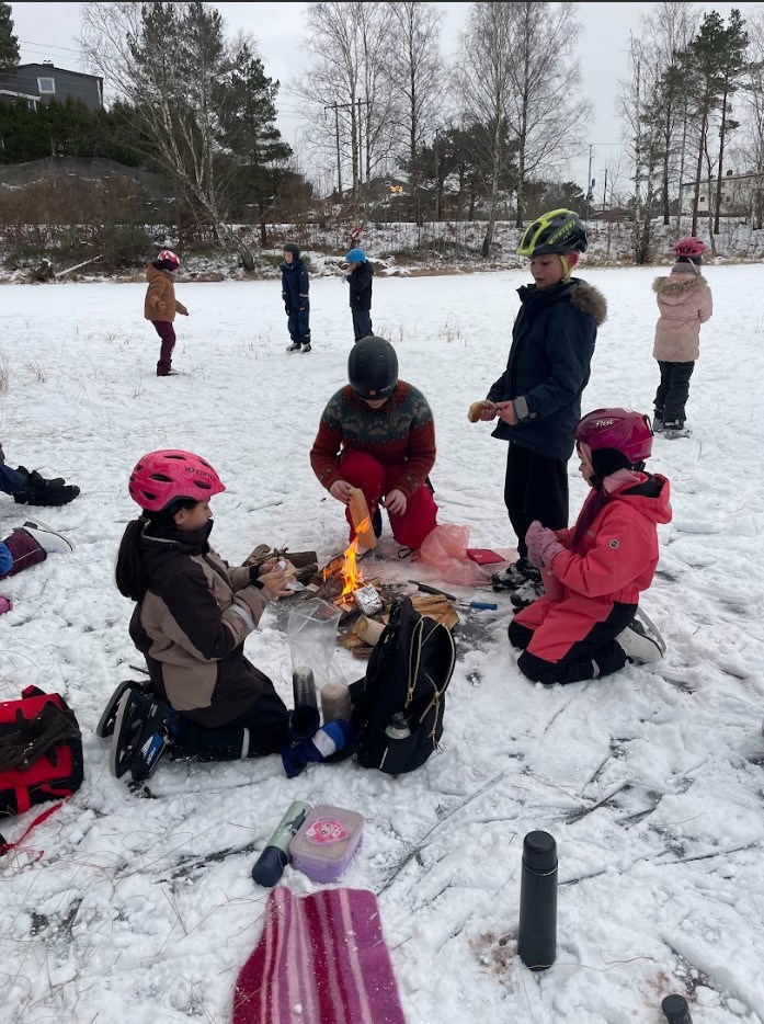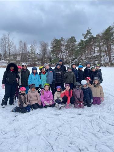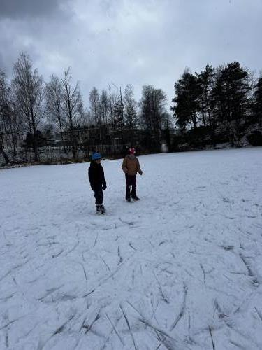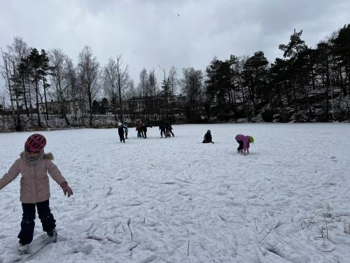 Vel fremme brukte vi dagen på å få på skøyter, leke på isen, øve på å gå, hjelpe hverandre, motivere hverandre og ha det gøy sammen.