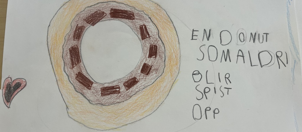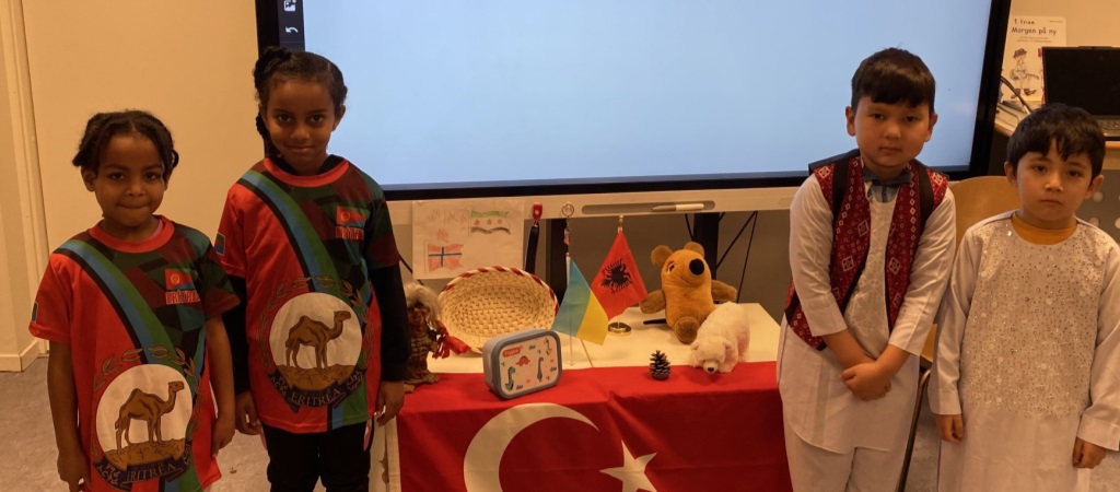 Elevene på 1. trinn forbereder seg til Slettheia OL. I dag skrev vi pakkeliste. Vi håper den henger på kjøkkenet hjemme nå.