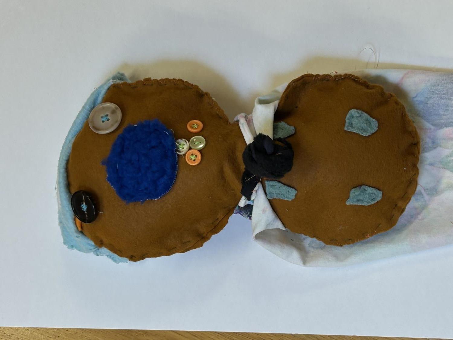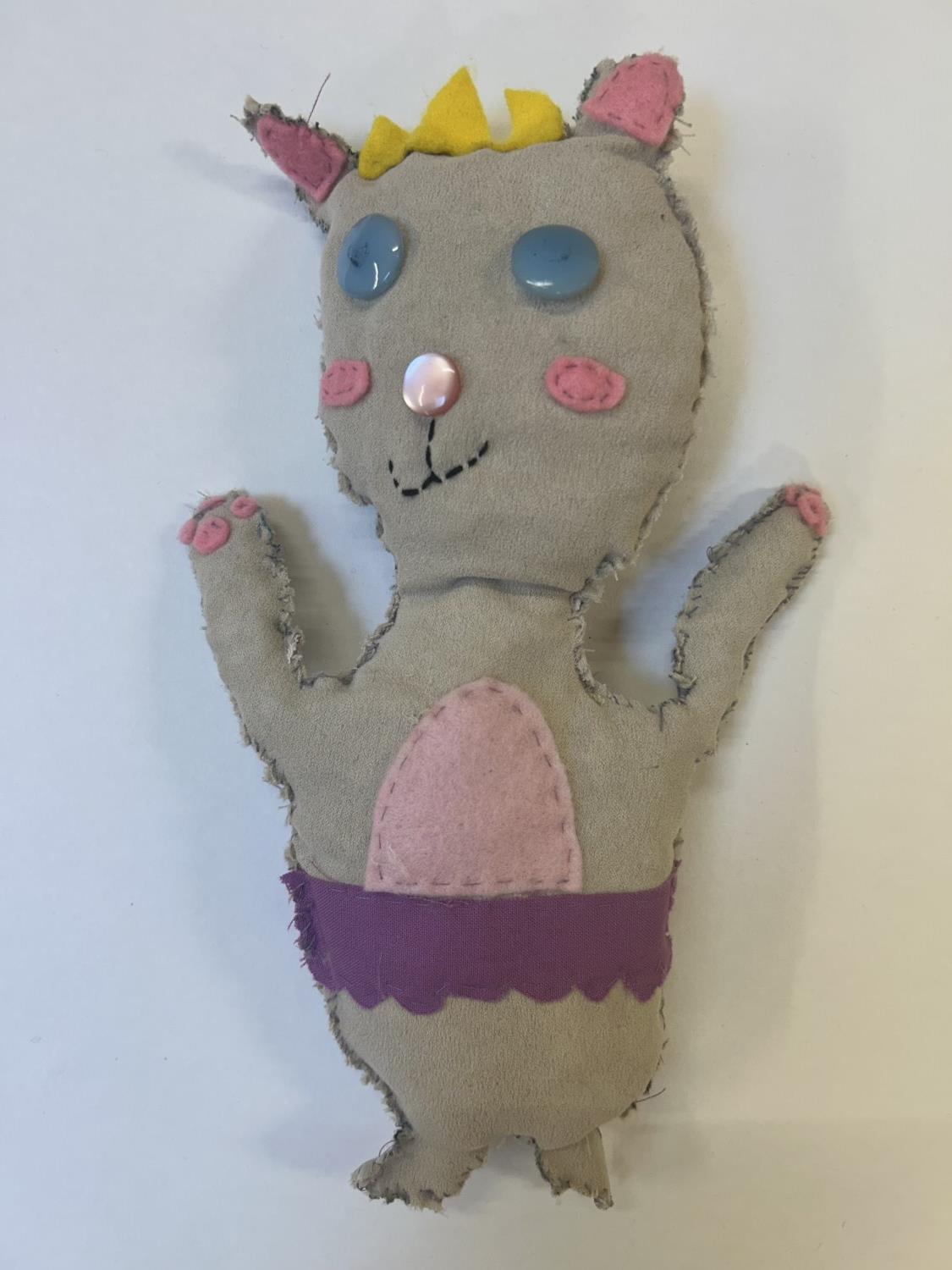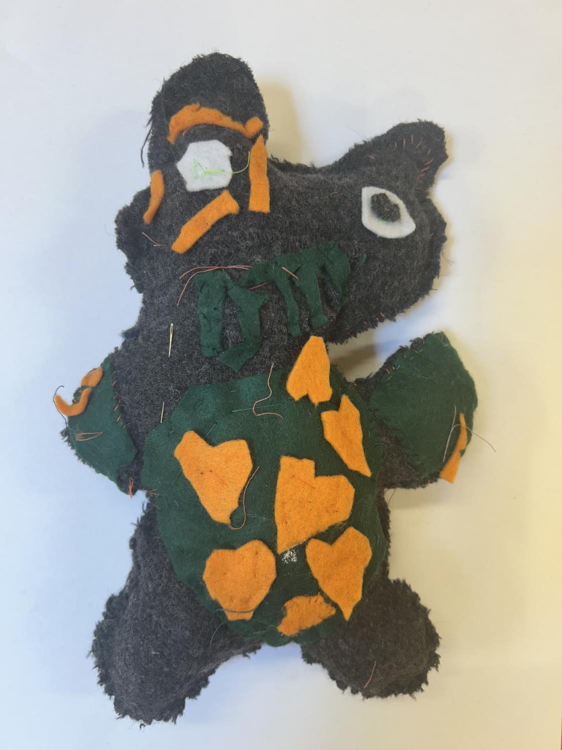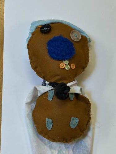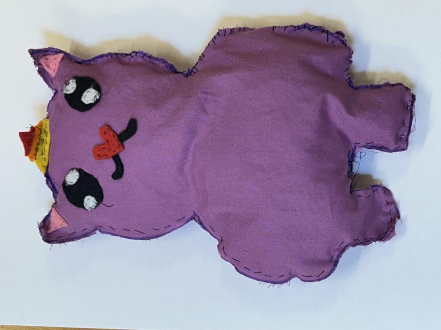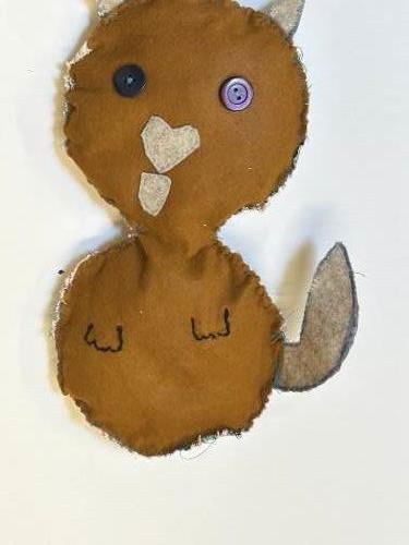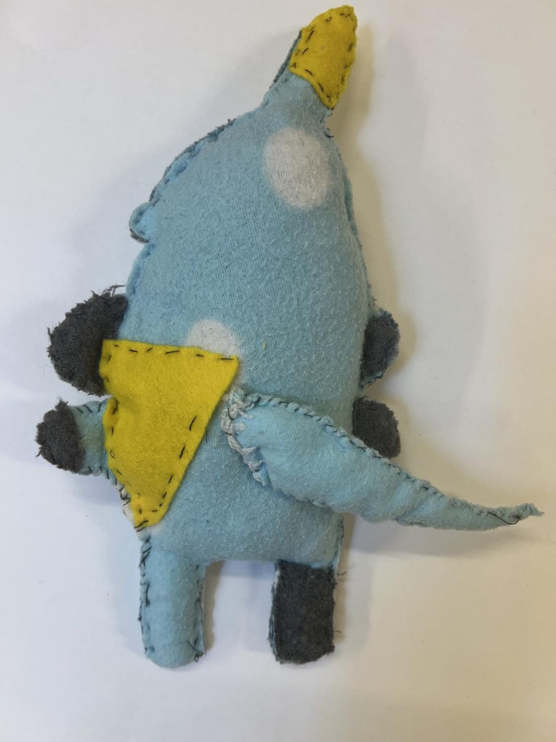 Vi fikk tegninger av fadderbarna. Så lagde vi en mal til tegningen som vi klippet ut. Vi brukte stoff av gamle tepper og litt annet. Vi måtte være veldig forsiktige med å klippe stoff, så de to sidene ble like og at vi ikke brukte for mye. Så sydde vi. Først sydde vi på tilbehøret og deretter de to sidene sammen. Vi måtte passe på at vi hadde en åpning til å legge in stoff. Når alt var sydd sammen var vi ferdige.