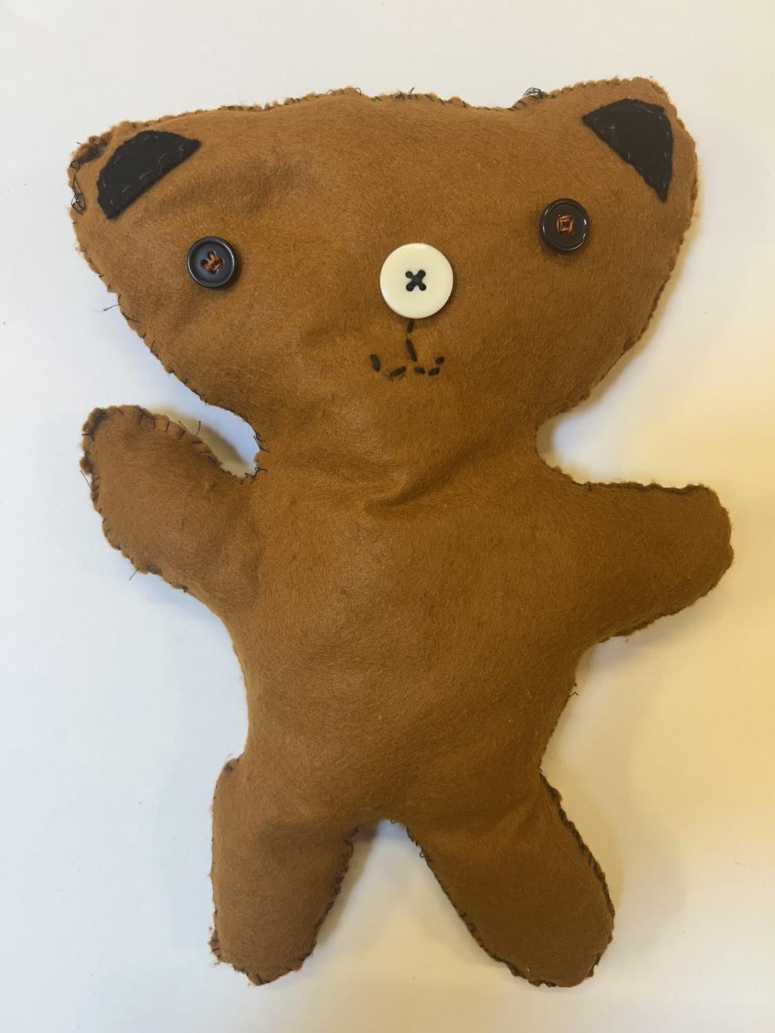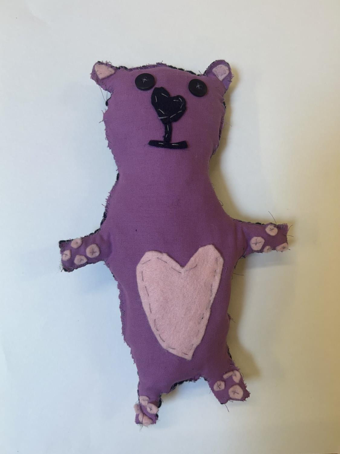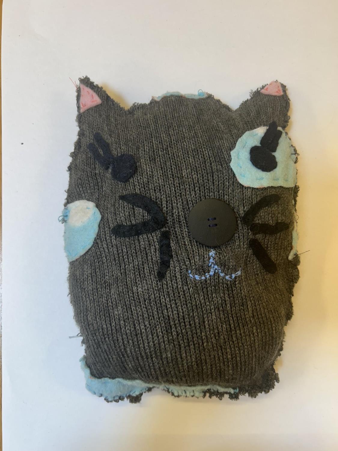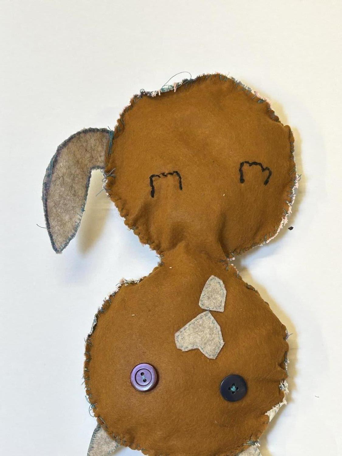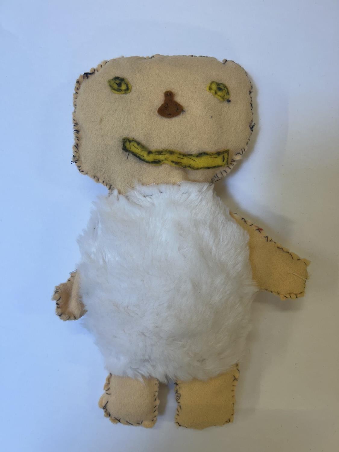 Vi fikk tegninger av fadderbarna. Så lagde vi en mal til tegningen som vi klippet ut. Vi brukte stoff av gamle tepper og litt annet. Vi måtte være veldig forsiktige med å klippe stoff, så de to sidene ble like og at vi ikke brukte for mye. Så sydde vi. Først sydde vi på tilbehøret og deretter de to sidene sammen. Vi måtte passe på at vi hadde en åpning til å legge in stoff. Når alt var sydd sammen var vi ferdige.