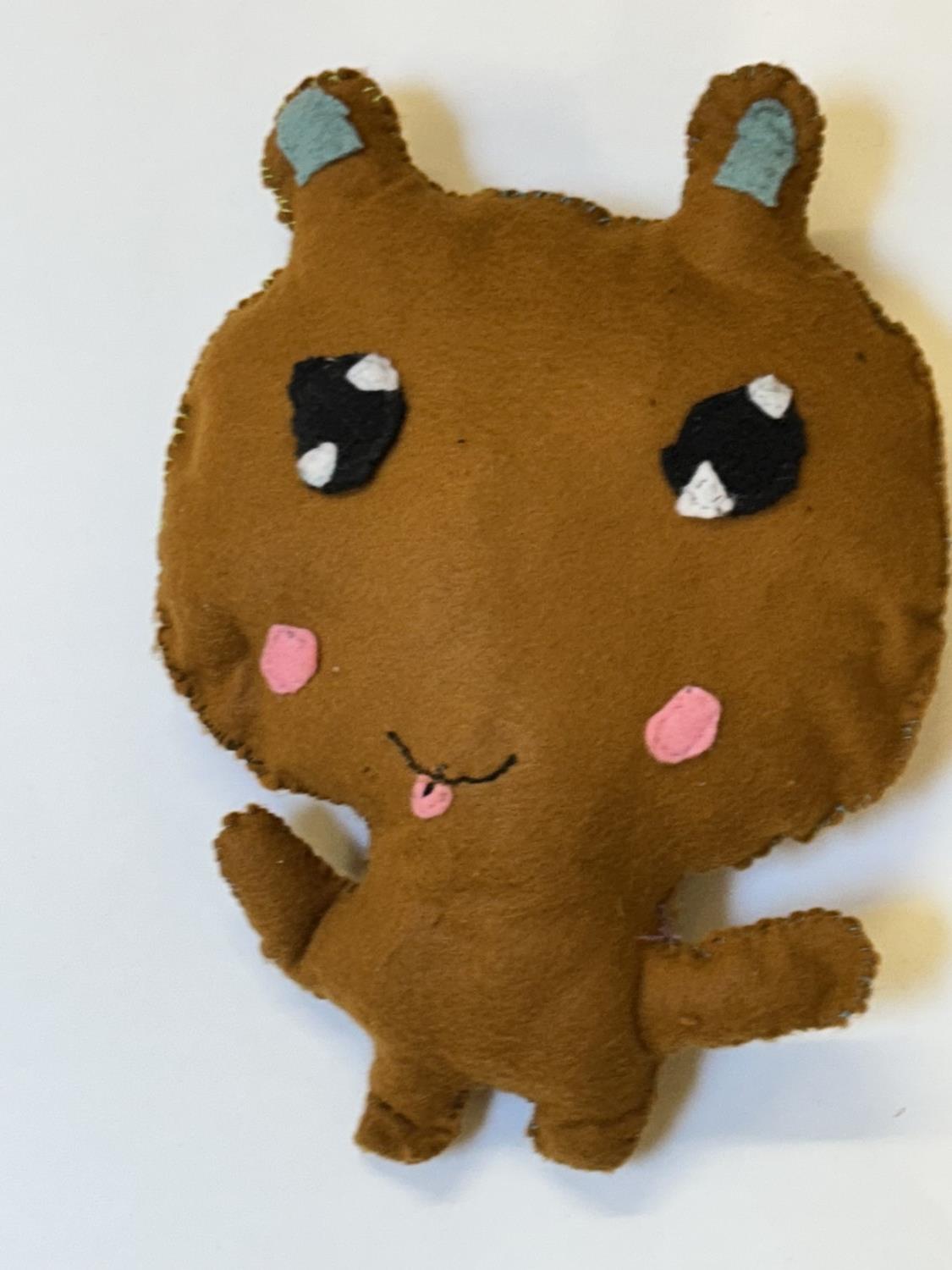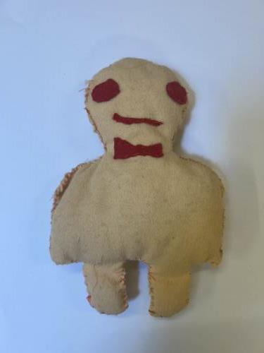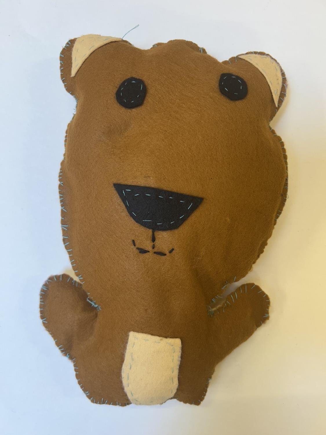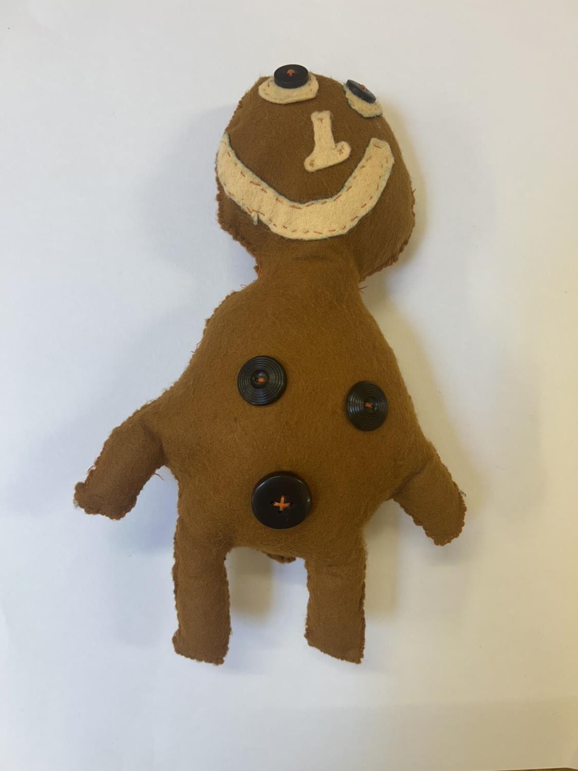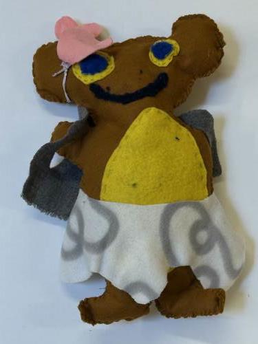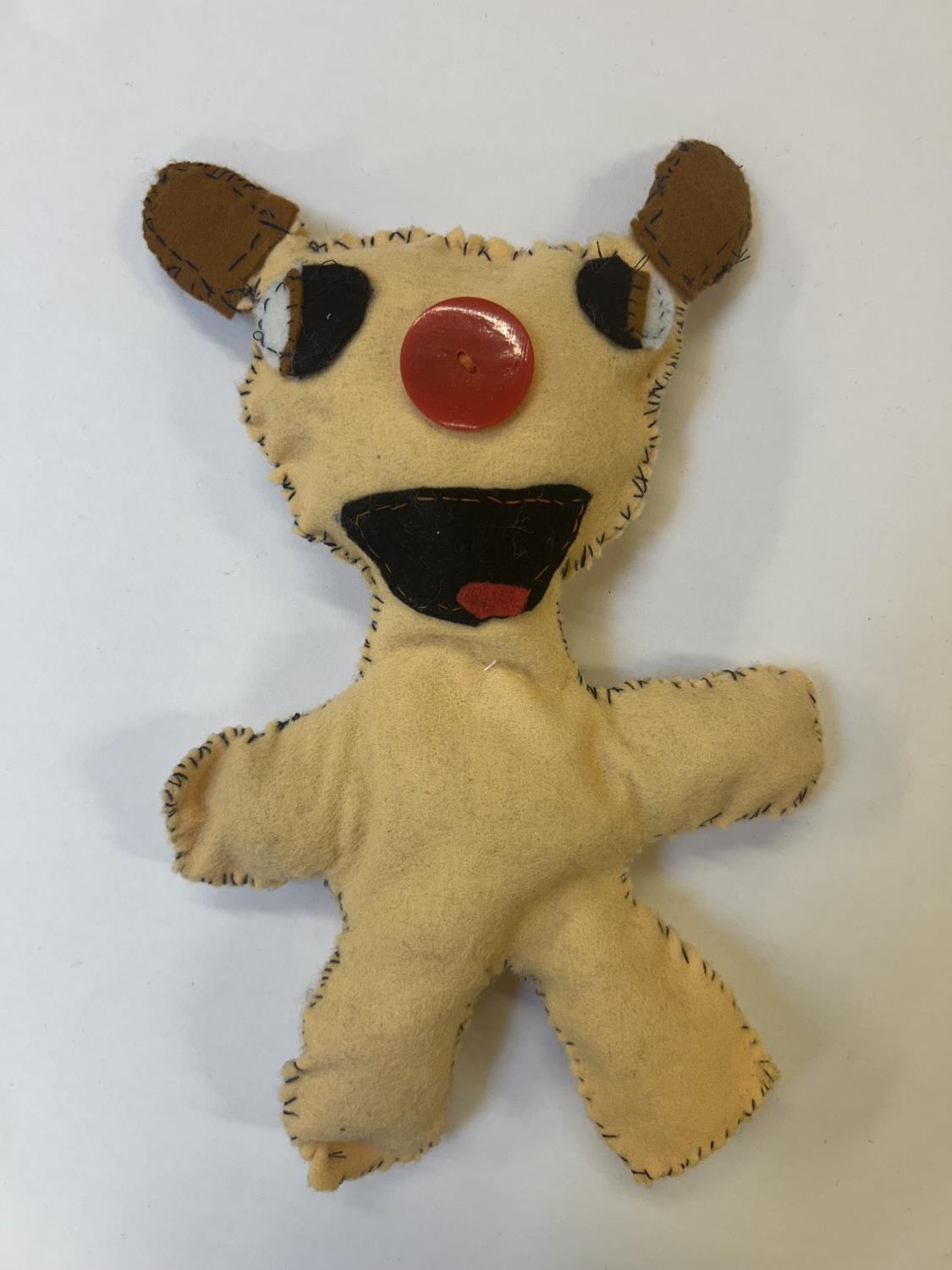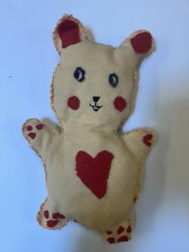 Vi fikk tegninger av fadderbarna. Så lagde vi en mal til tegningen som vi klippet ut. Vi brukte stoff av gamle tepper og litt annet. Vi måtte være veldig forsiktige med å klippe stoff, så de to sidene ble like og at vi ikke brukte for mye. Så sydde vi. Først sydde vi på tilbehøret og deretter de to sidene sammen. Vi måtte passe på at vi hadde en åpning til å legge in stoff. Når alt var sydd sammen var vi ferdige.