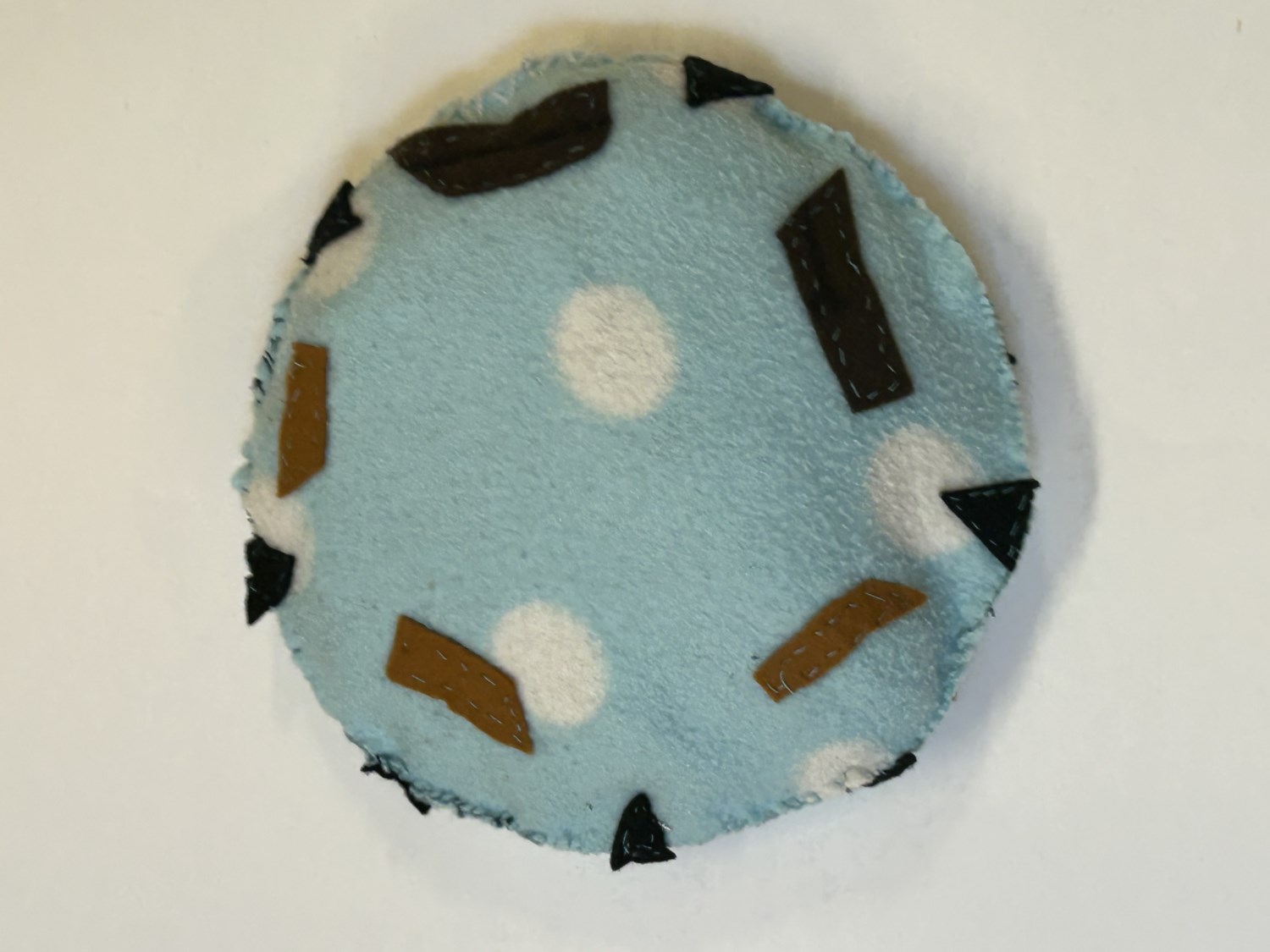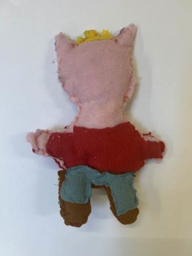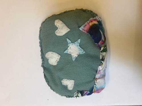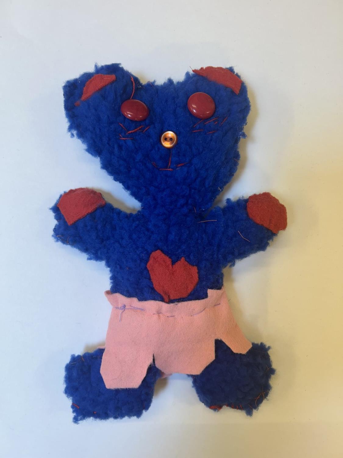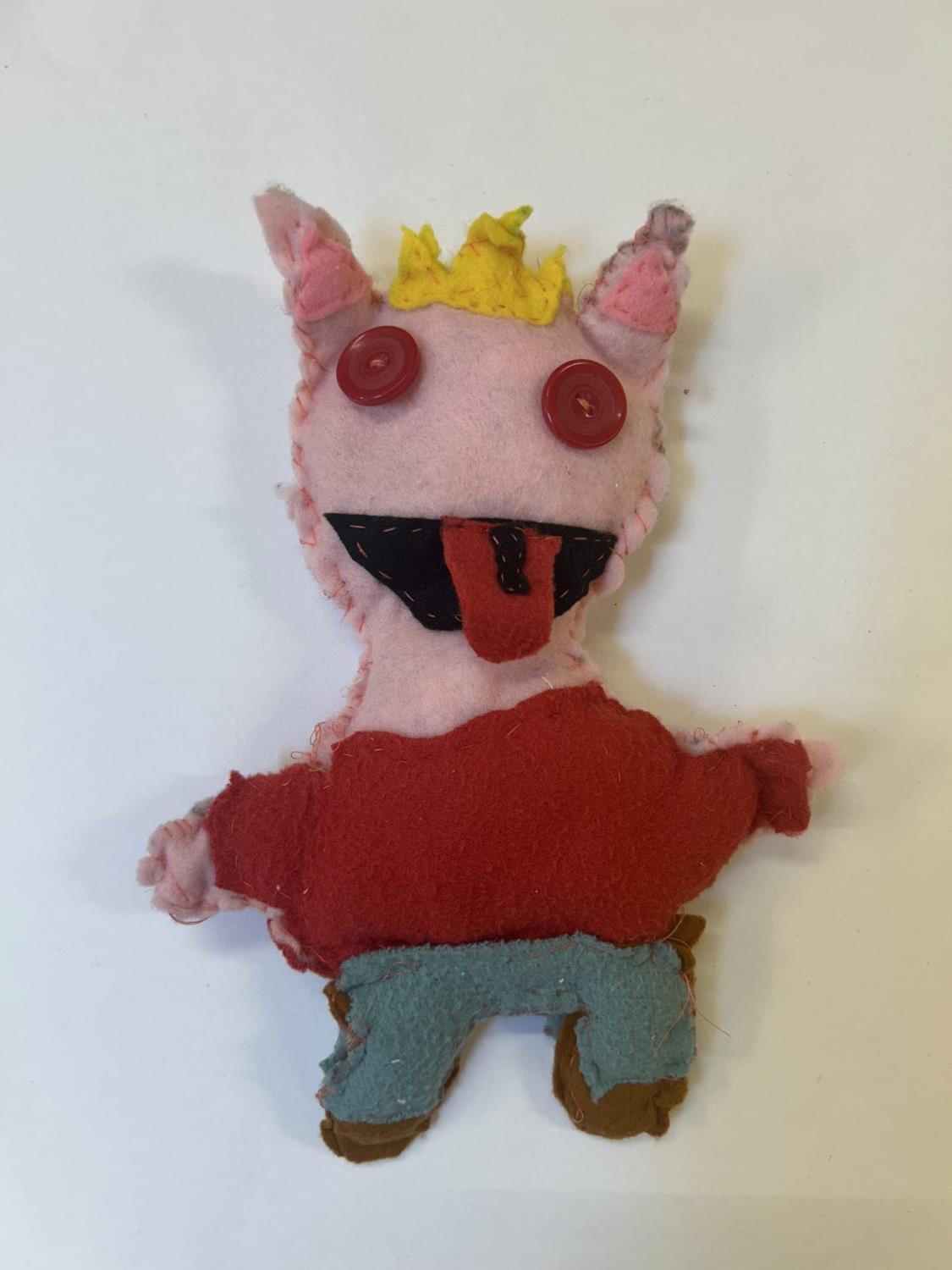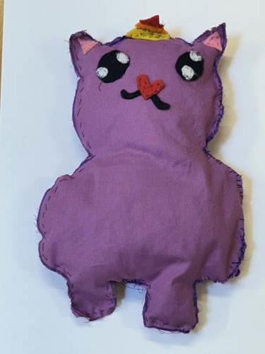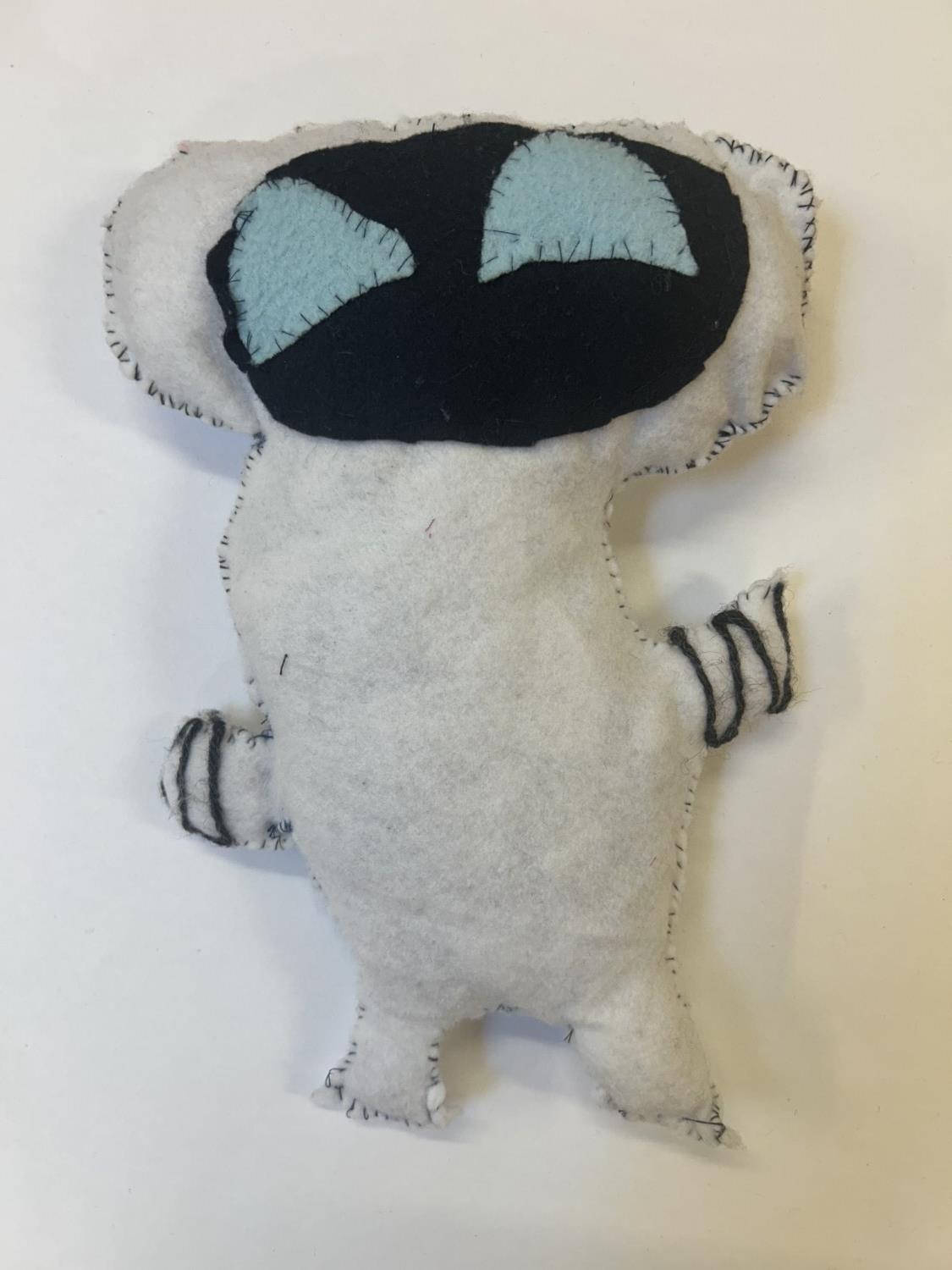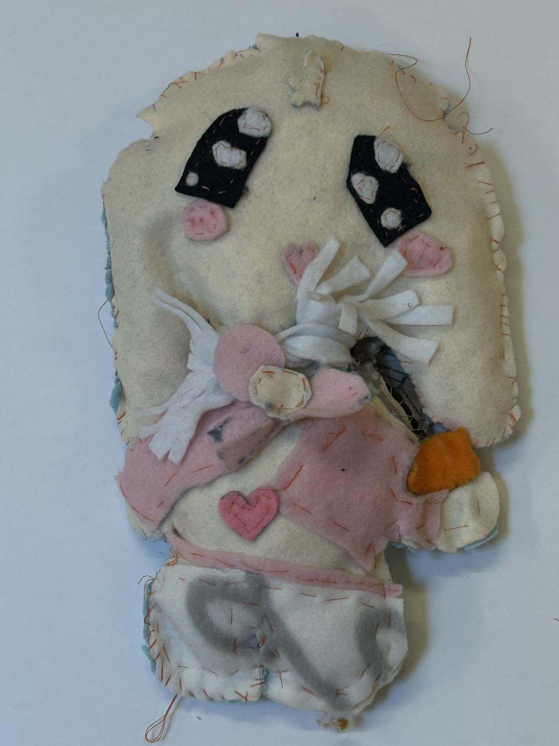 Vi fikk tegninger av fadderbarna. Så lagde vi en mal til tegningen som vi klippet ut. Vi brukte stoff av gamle tepper og litt annet. Vi måtte være veldig forsiktige med å klippe stoff, så de to sidene ble like og at vi ikke brukte for mye. Så sydde vi. Først sydde vi på tilbehøret og deretter de to sidene sammen. Vi måtte passe på at vi hadde en åpning til å legge in stoff. Når alt var sydd sammen var vi ferdige.