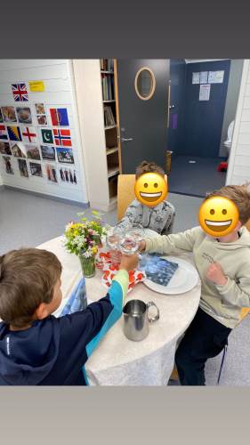 Vi feiret barna med en deilig taco-lunsj 🌮, etterfulgt av frisk frukt 🍓🍎 til dessert – noe som falt godt i smak hos alle små og store. Under festen sang vi også noen fine, litt vemodige gråtesanger som rørte mange av oss (hvertfall oss voksne) 😢🎵