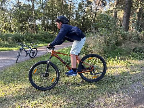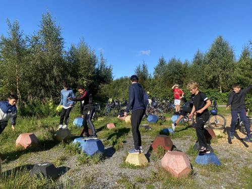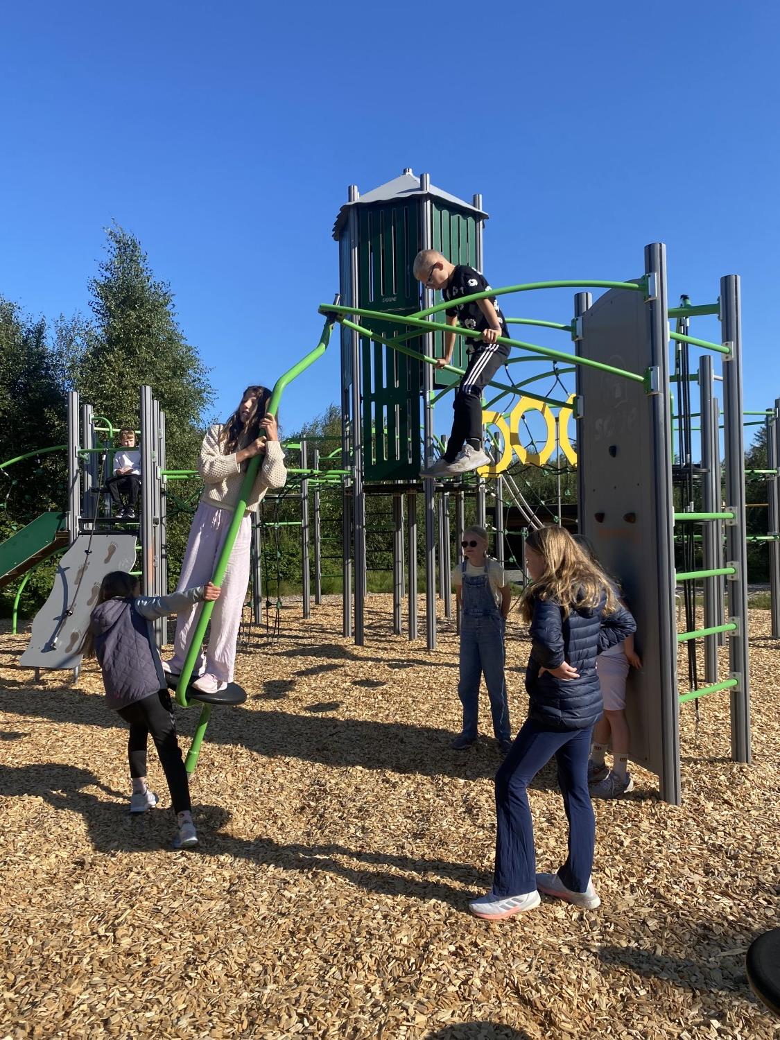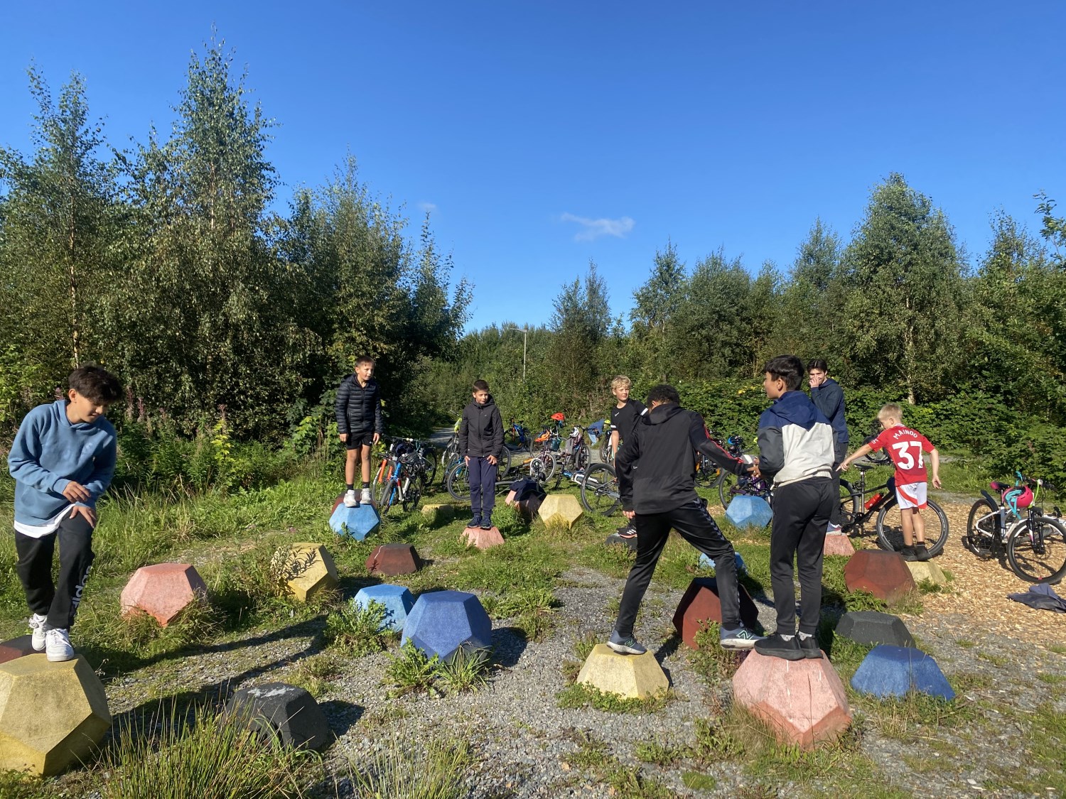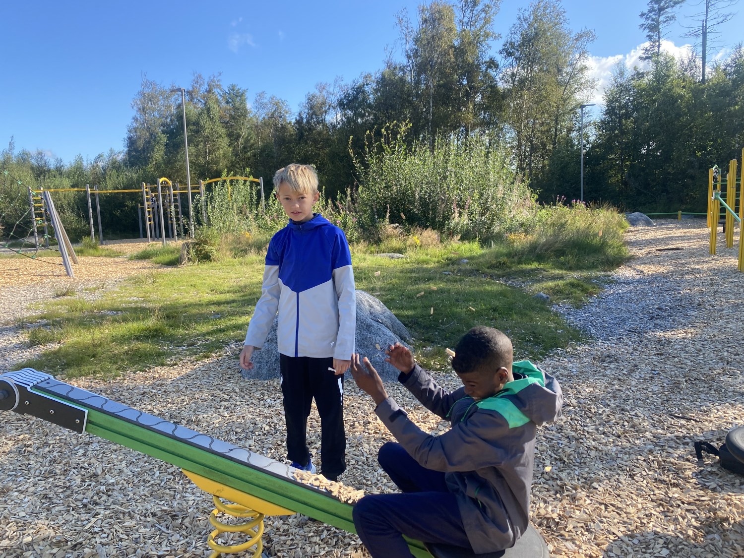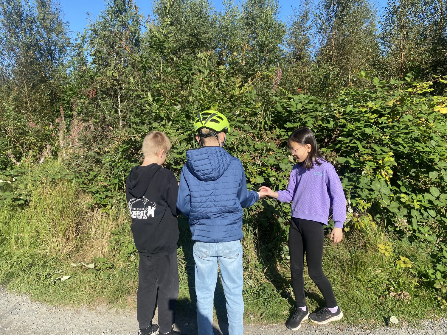 Elevane var veldig gode på å ta beskjedar og hugse på reglane vi hadde gjennomgått på sykkelopplæringa. Vi tok ein liten tur innom leikeplassen ved Frøylandsvatnet. God stemning og leik☀️
