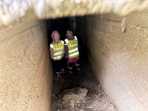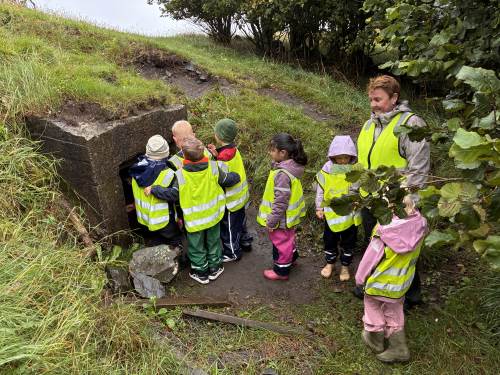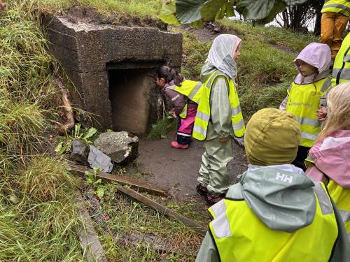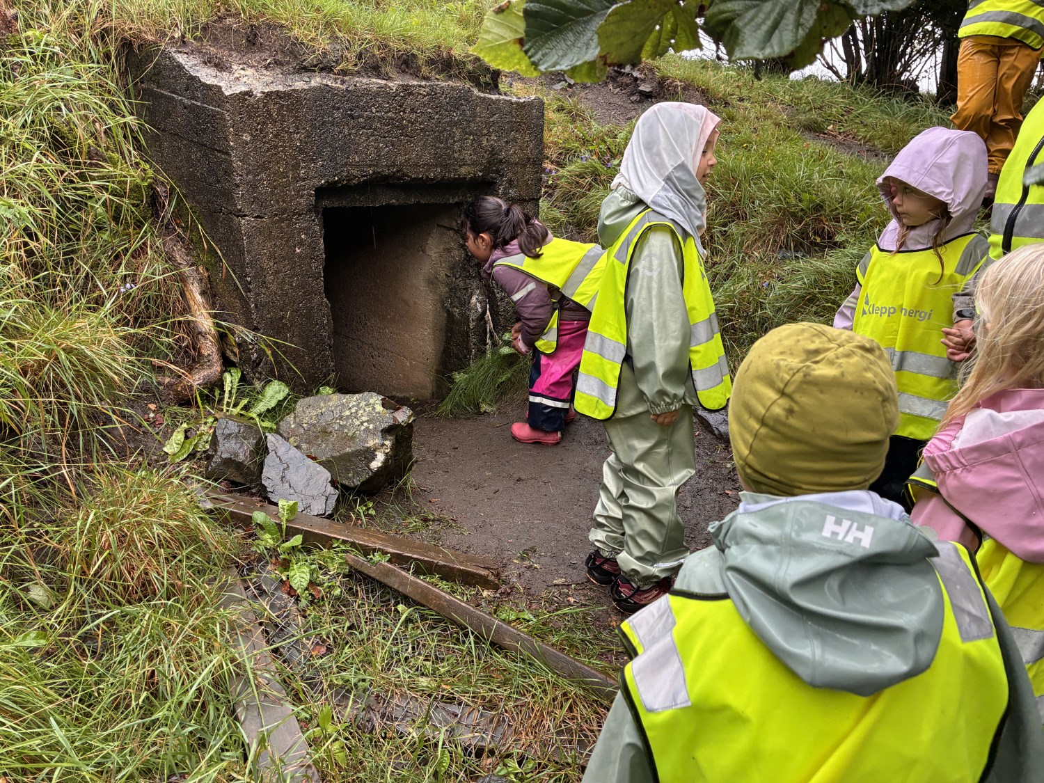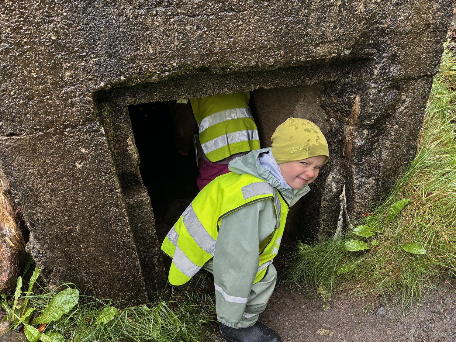 Den gamle bunkersen på toppen var eit spennande mål. Med ei lommelykt fekk me utforske det mørke rommet. Me såg fleire store edderkopper. Mange syntest det var litt skummelt, men mest gøy.
