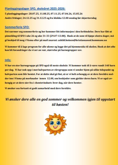 > Aktuelt > Informasjon om SFO - skoleåret 2025 2026