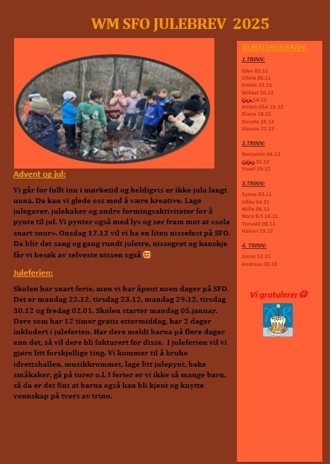 > Aktuelt > Julebrev fra SFO