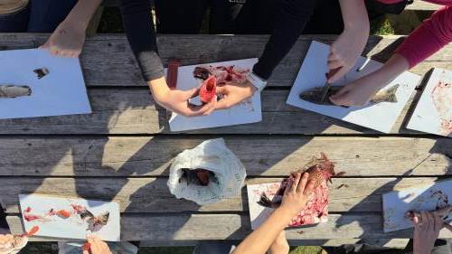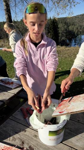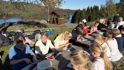 Finværet fortsetter, aktiviteten er stor og smilene er mange på dag to på Bringsvær. Elevene har i dag trukket garnene som ble satt i går, og hele 50 ørret ble plukket ut av garn, sløyet og grillet. De fleste synes det smakte veldig godt. Ellers har vi i dag lært om jakt, vært på natursti hvor vi blant annet fikk skyte med salongrifle (tror jeg det var) på blink🎯 Det var stor stas! Elgkjøtt ble det også mulighet til å smake på. Til middag ble det servert kjøttkaker med brun saus og tilbehør. I den påfølgende "klassens time" hadde vi kjærlighet og flørting som tema. Det slo godt an for å si det sånn❣️