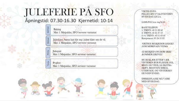 Juleferien på SFO 1-4 trinn