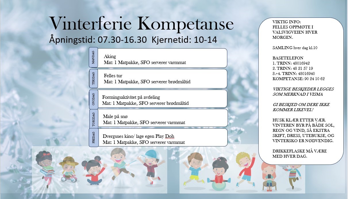 Kompetanse har sin egen plan og bruker sin base som vanlig i hele vinterferien.