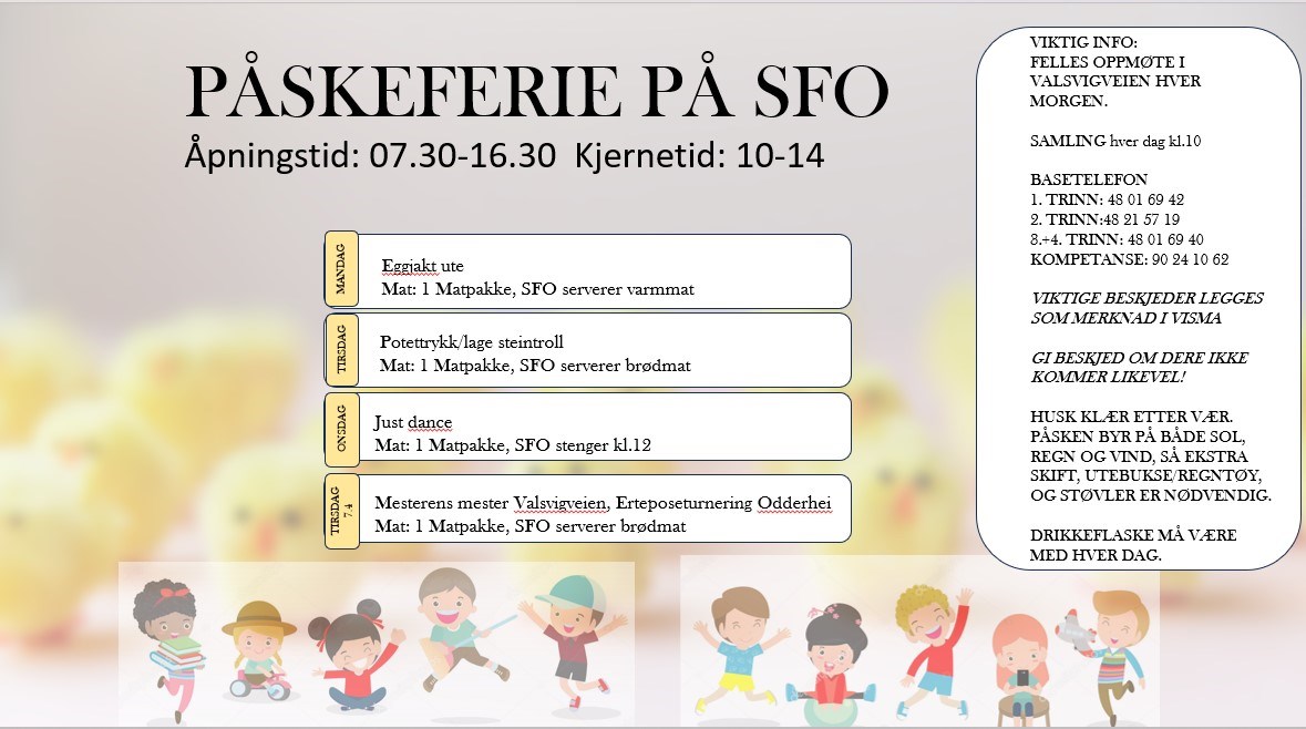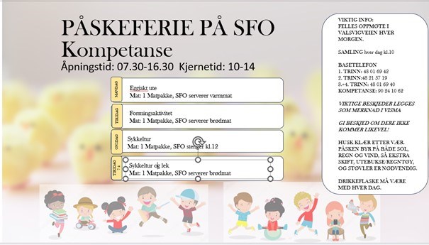 Her finner du Informasjon om hva som skjer på SFO i påskeferien for alle baser.