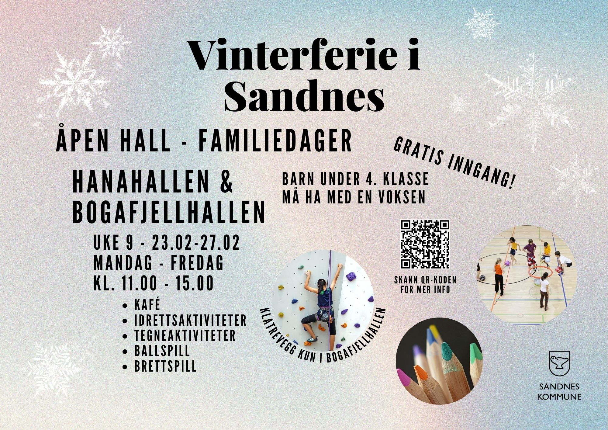 Her kommer en oversikt over vinterferie tilbud i Sandnes kommune. Se vedlegg for mer informasjon.