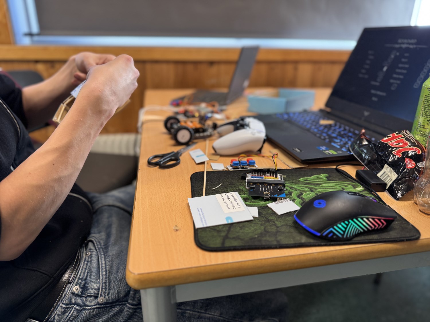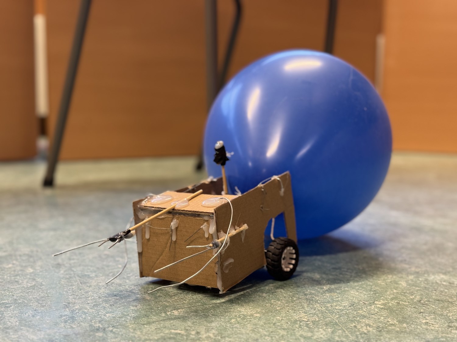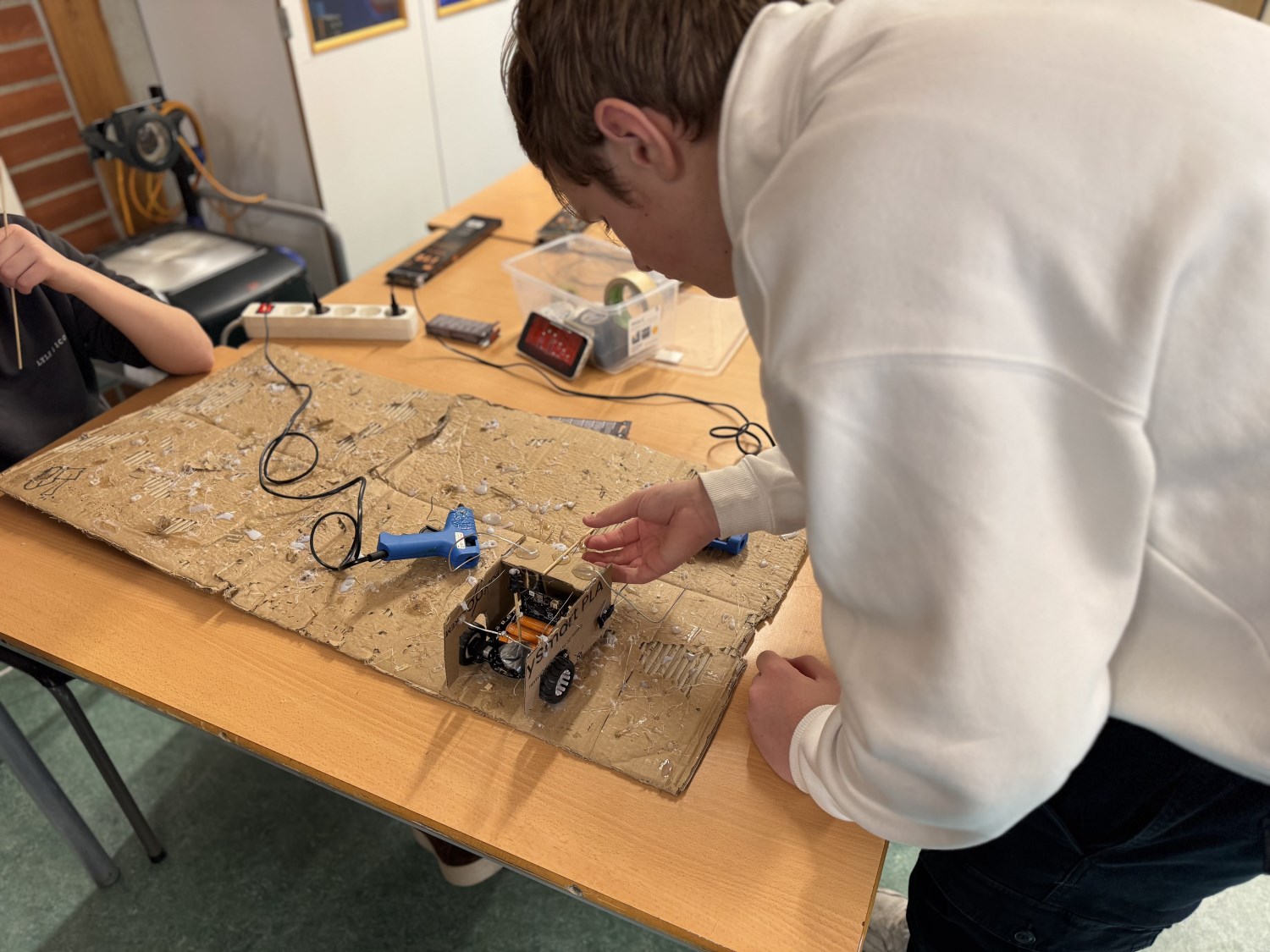 I valgfag programmering har vi de siste ukene programmert Bit:Bot-biler og fjernkontroll, for så å bygge rene krigsmaskinene ut av de. Målet var ballongkrig, og i dag gjennomførte 9. trinnselevene første "krig"! Høyt engasjement og mye latter. Ta en titt på bilder fra prosessen og kampe, og film fra dagens kamp!