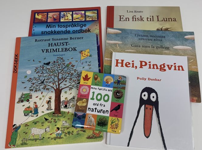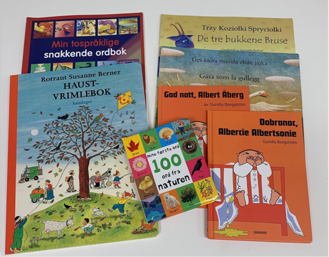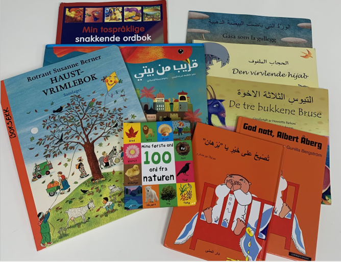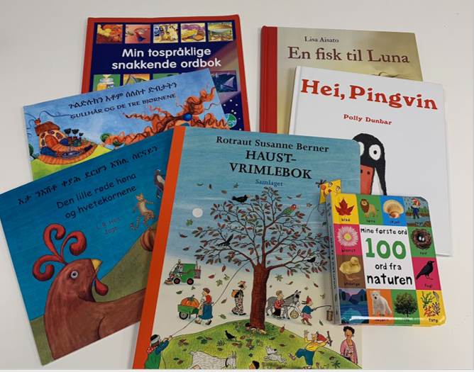 VeiIederkorps barnehage låner ut boksekker med bøker på ulike språk til barnehage og foreldre.