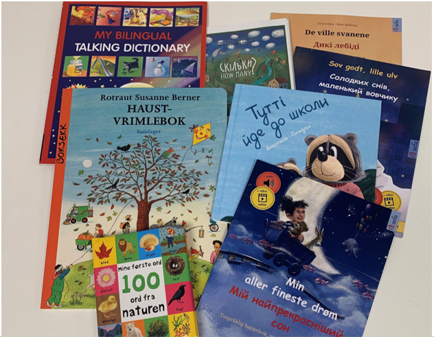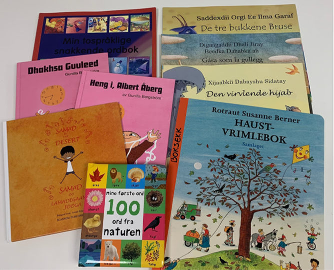 Vi har boksekker på seks språk: arabisk, somali, polsk, tigrinja, russisk og ukrainsk. sekkene kan lånes i 4-6 uker.