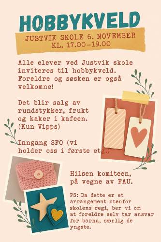 Justvik skole inviterer til Hobbykveld.