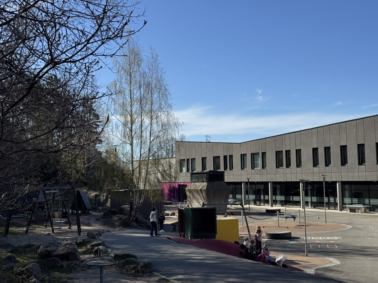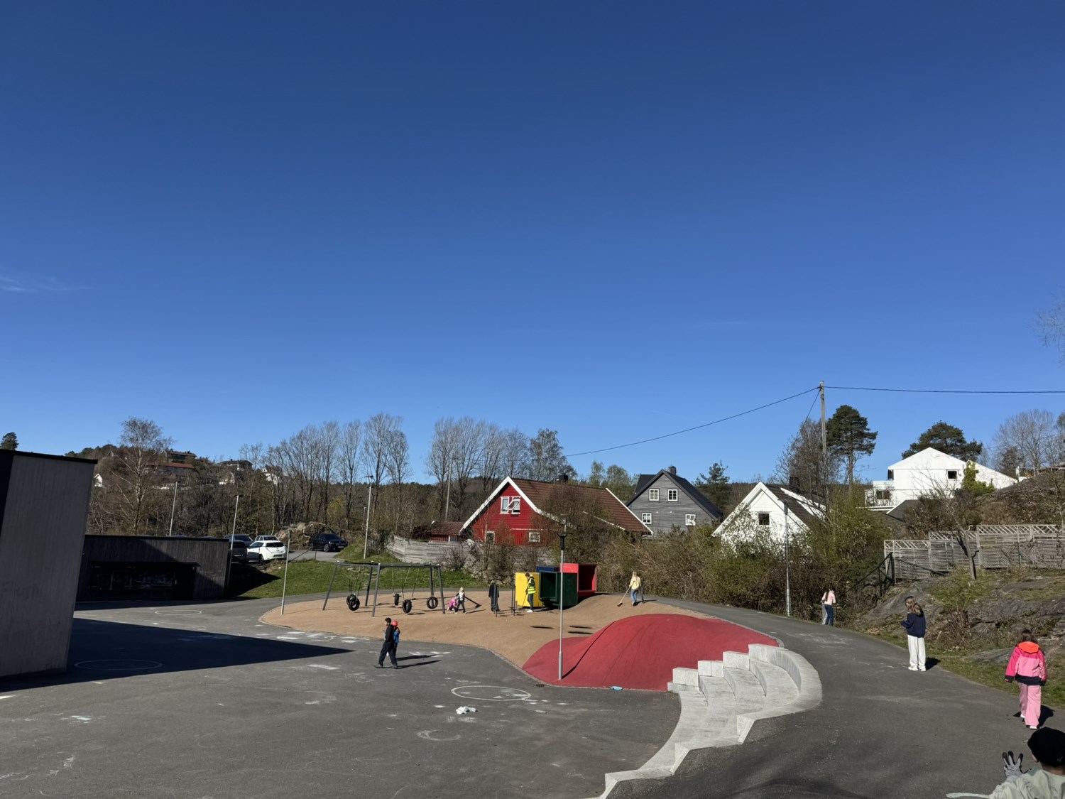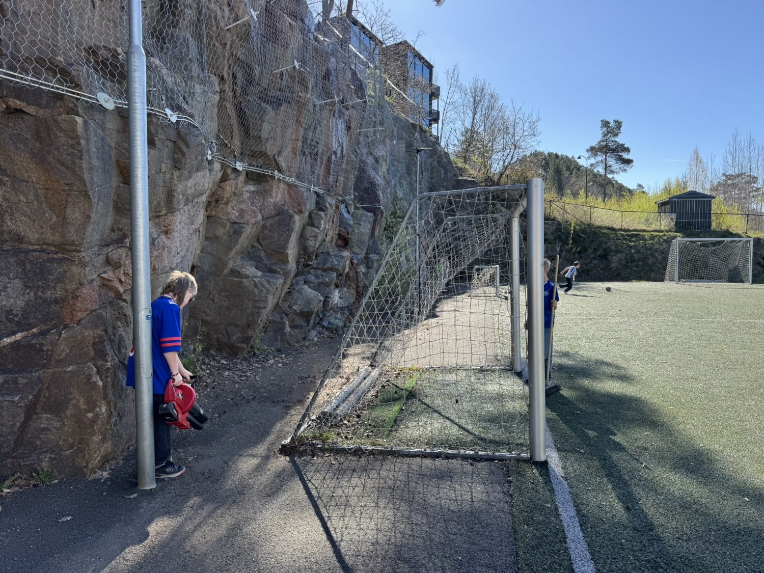 1. og 5. trinn = Skolegården, fotballbanen og skogen