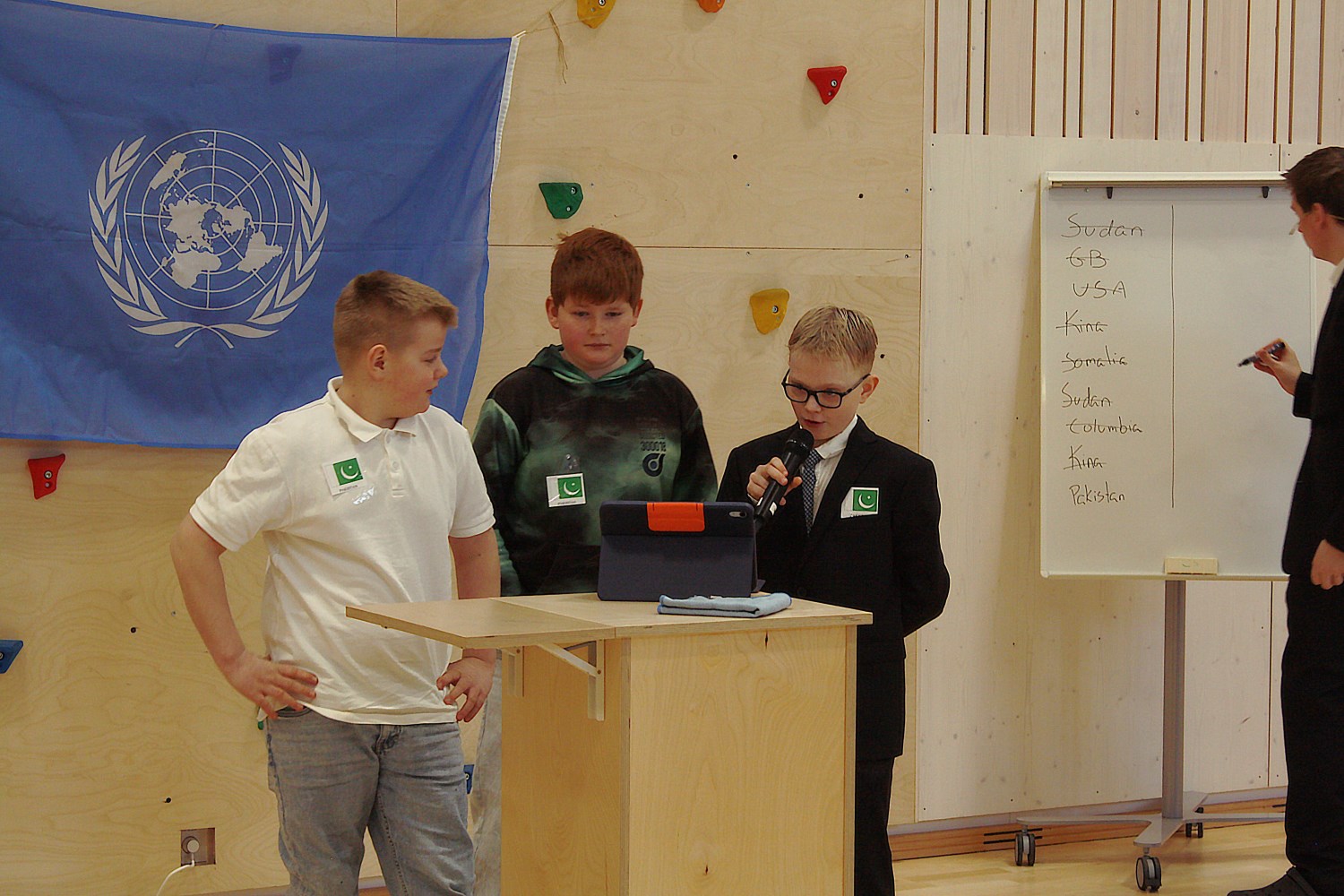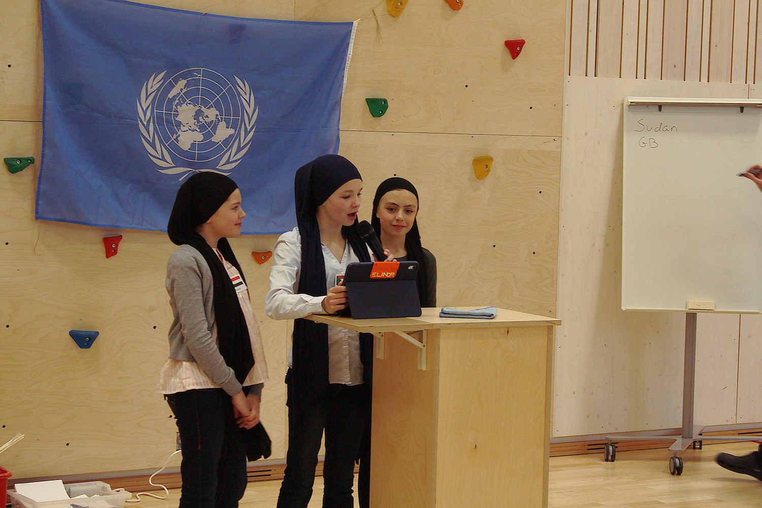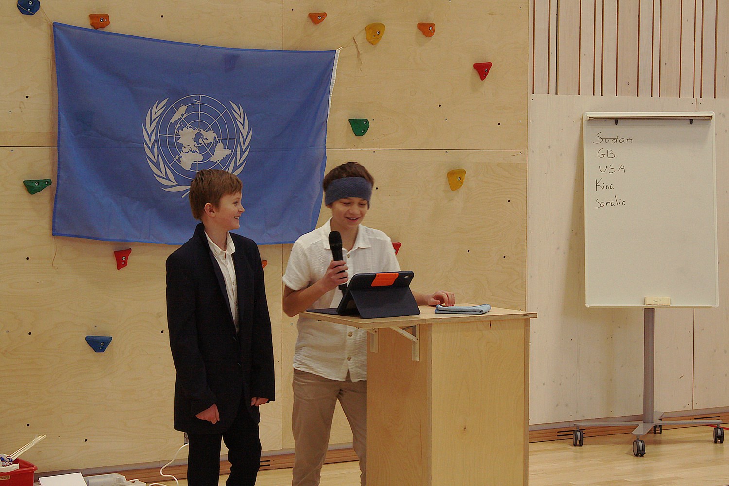I dag vart det gjennomført FN-rollespel på 6. trinn i gymsalen, etter fire veker med førebuing. Med namnelappar, frukt, kjeks og Non Stop. Det var ein veldig vellykka dag, med mykje engasjement, brevsending, resolusjonar og kontraktar. Fleire resolusjonar vart stemde fram til slutt, og kanskje ikkje alle land er like nøgde med resultata. Nå er det berre å gle seg til neste års FN-rollespel, nå som me har vorte nokre erfaringar rikare.
