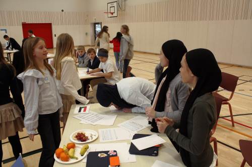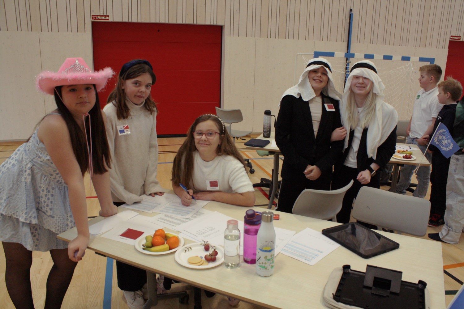 I dag ble det gjennomført FN-rollespill på 6. trinn i gymsalen, etter fire uker med forberedelser. Med navnelapper, frukt, kjeks og Non Stop. Det var en veldig vellykket dag, med mye engasjement, brevskriving, resolusjoner og kontrakter. Flere resolusjoner ble stemt fram til slutt, og kanskje ikke alle land er like fornøyde med resultatene. Nå er det bare å glede seg til neste års FN-rollespill, nå som vi har blitt noen erfaringer rikere.