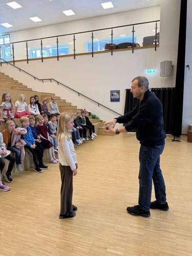 Det ble en kjempefin åpen scene for elevene på 2.trinn. Det var flere elever som utfordret seg selv med å enten synge en sang, danse eller spille et instrument foran det andre elevene på trinnet. De var supertøffe og gjennomførte med stor stil. Det var også en mulighet til å vise frem en leke eller noe annet som betydde noe for eleven. De måtte snakke litt foran publikum med Henrik, som var programleder for anledningen. Dette skal vil gjøre igjen!