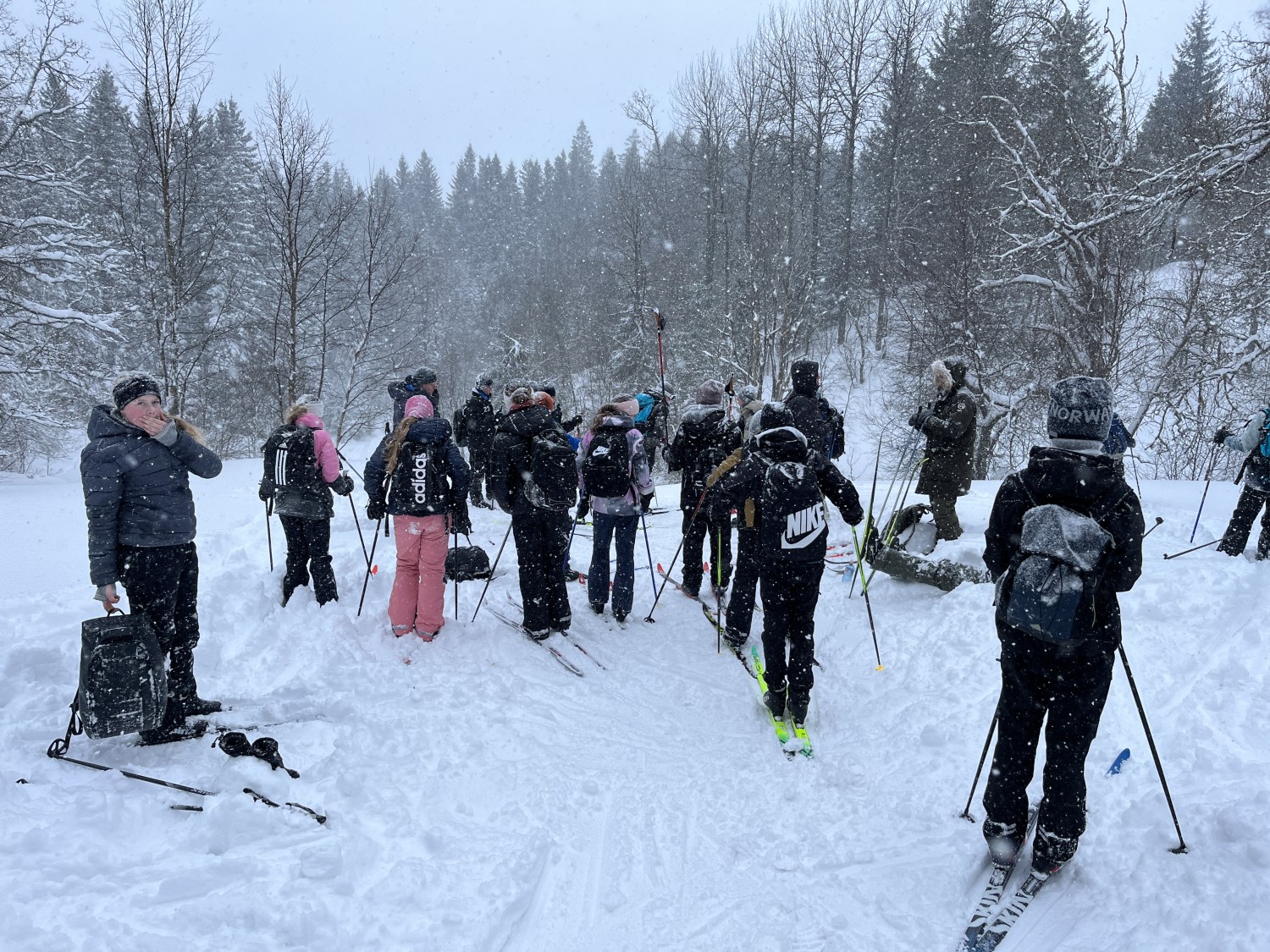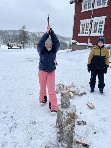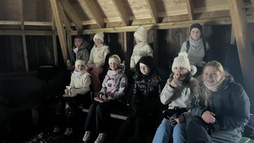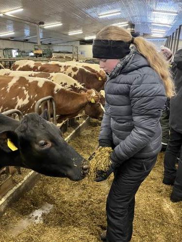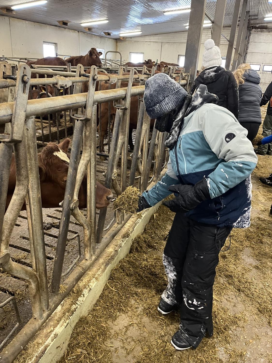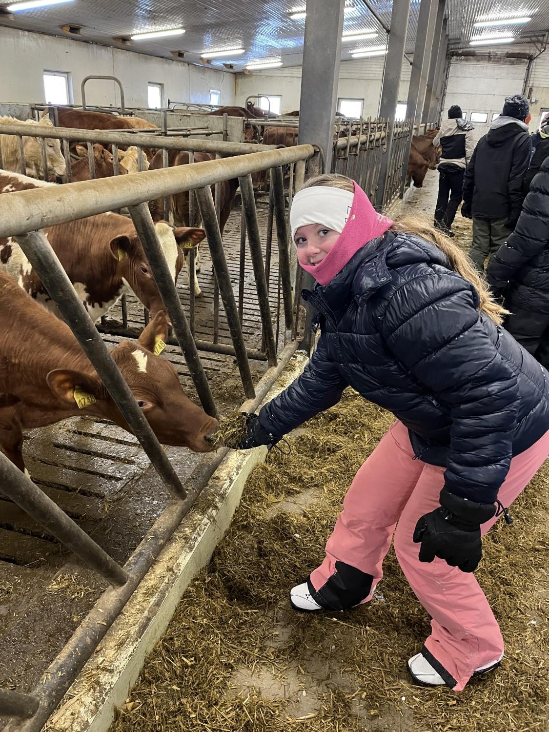På onsdag gikk vi på ski til bondegården, Tjomsås. Tjomsås er en større gård med mange kyr, men også sauer og høner. På vei dit delte vi oss i to grupper, hvor den ene gikk en litt lenger tur, men alle gjennomførte over 5 kilometer totalt denne dagen.