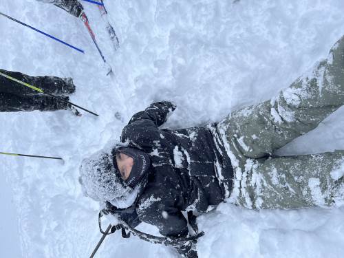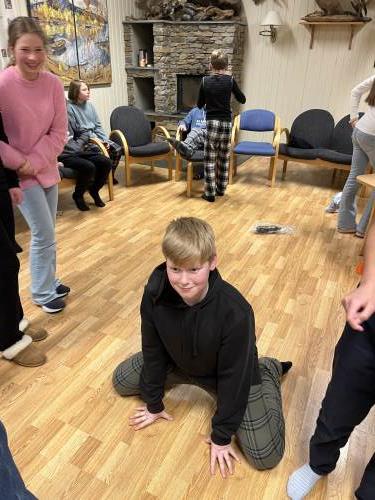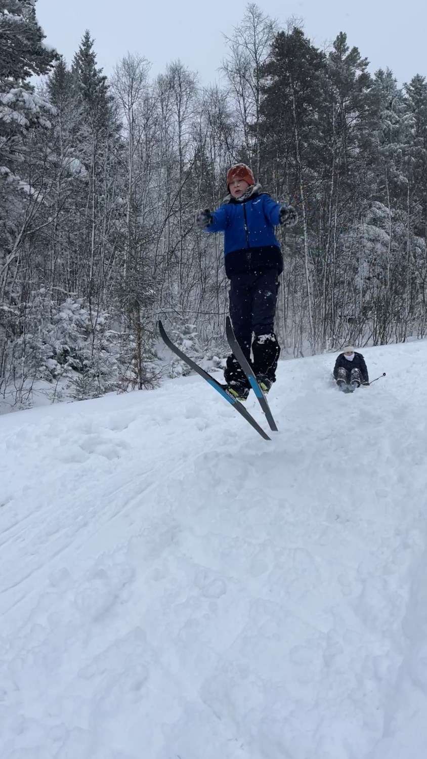 På mandag gikk vi ei løype i nærheten av skolen. Opplegget var tilpasset slik at "ekspertene" fikk gå flere runder, mens andre fikk litt mer hjelp og tips. Generelt var nivået høyt og alle fikk det til. På kvelden var det refleksløype med truger og lommelykt.