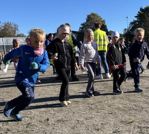 Vi har også gjort noen ting sammen med hele skolen. Vi har danset "Blime"-dansen i en full skolegård. Vi har også gjennomført Lova-joggen. Dette ble gjort på grusbanen ved KKG. Her løp elevene runder for å samle inn penger til Finns Fairway. Det var en kjempefin dag med godt humør, strålende sol og masse energi.