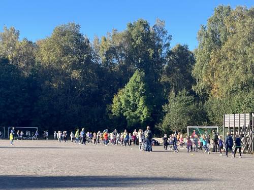 Det var god stemning og alle ville gjøre sitt ytterste for å gjøre en god innsats. Småtrinnet løp på Gimle, mens 5. til 7. trinn løp i Jegers