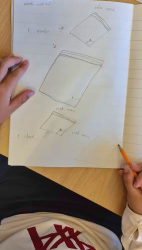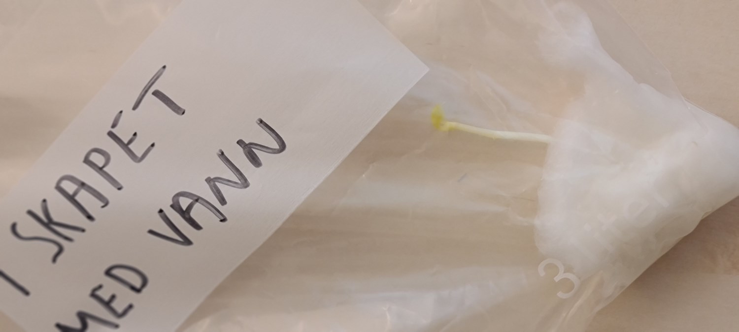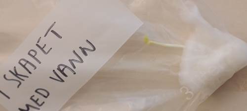 Vi gjorde forsøk med en tørket ert som ble lagt på en bomullsdott i en zippet plastpose; noen med lys og vann, lys uten vann, og i mørke med og uten vann. Vi lagde hypoteser og fulgte forsøket gjennom flere uker. Noen av hypotesene (hva vi trodde kom til å skje) stemte. Andre stemte ikke. Hva som skjer videre nå som spirene har blitt til planter som står i kopper med jord i både lys og mørke, gjenstår å se.