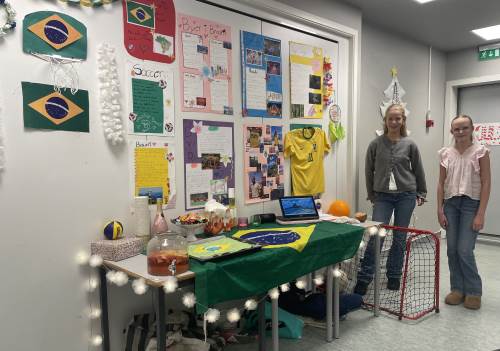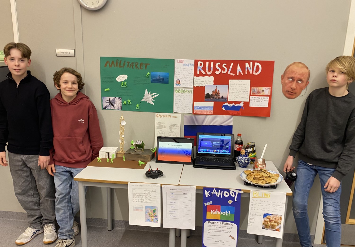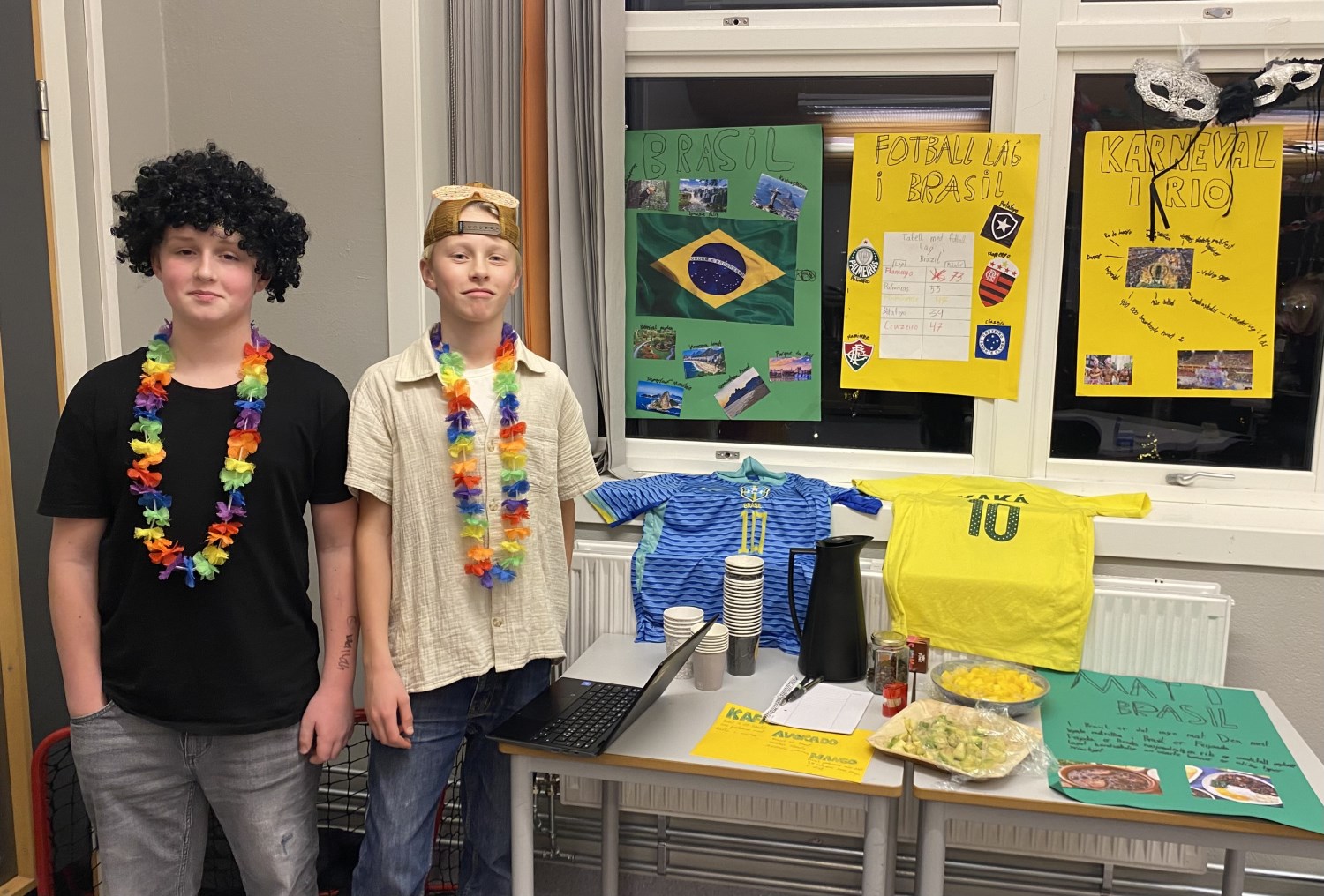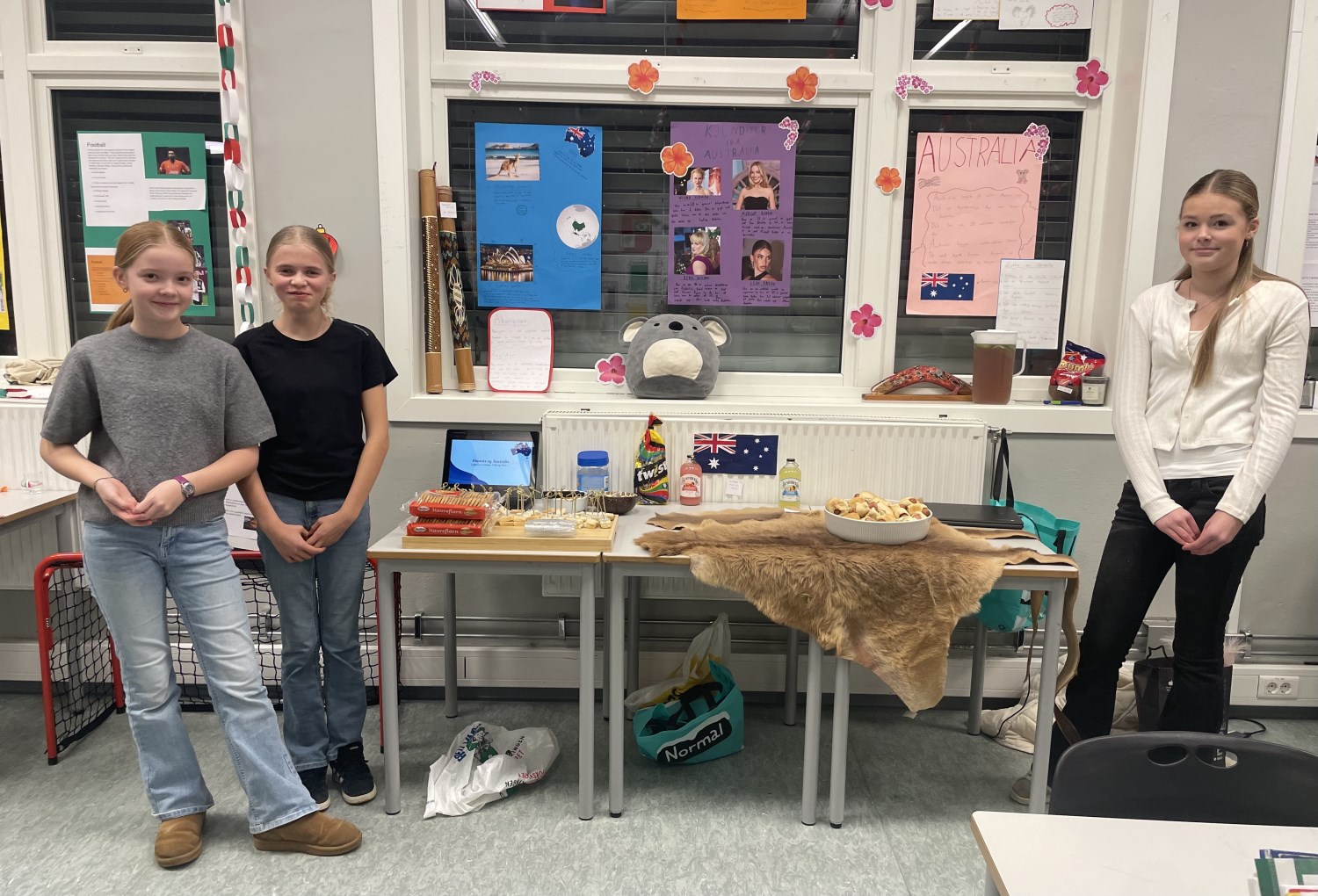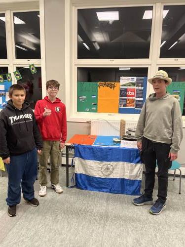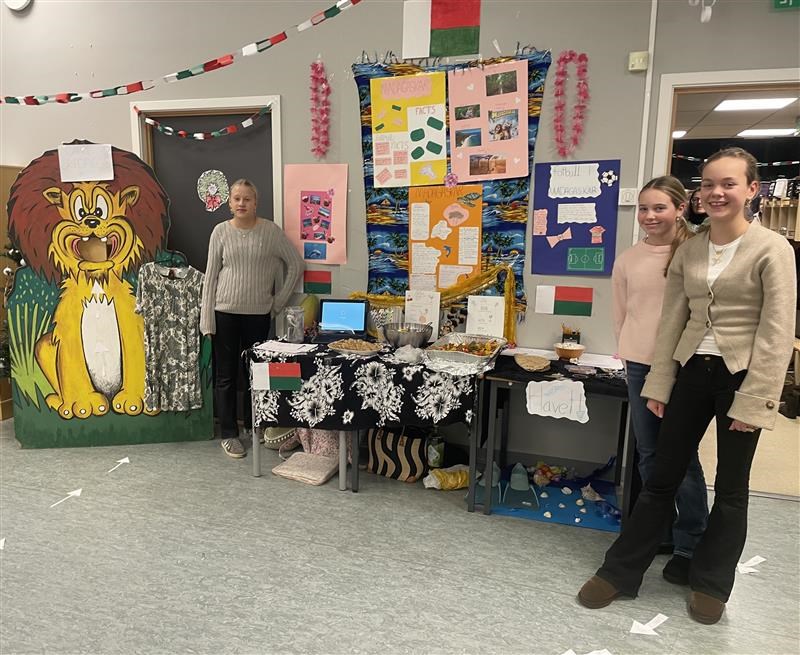 Juleavslutningen på 7.trinn har i flere år vært en Verdensutstilling, der elevene selv får vist frem det de har jobbet med. Det ble en helt utrolig flott utstilling! Elevene hadde disket opp med smaksprøver fra landet de presenterte, de hadde gjenstander fra landet, tøy, quizer, kahoot, og i tillegg ble det gjennomførte typiske sportsaktiviteter og andre aktiviteter på utstillingene. Elevene imponerte stort med flotte utstillinger, godt engasjement og gode kunnskaper. Vi takker alle som tok turen innom, det var et godt oppmøte! Det ble en hyggelig ettermiddag med mingling og mange smil. Etter så mange deilige smaksprøver var nok alle gode og mette da de kom hjem. Dagen etter utstillingen inviterte vi også fadderbarna for å komme å se på.