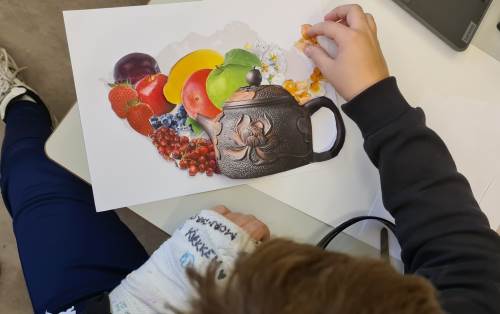 Som del av Kunst og Håndverk jobbet gruppe 2 med FotoART i 6 uker. Med bakgrunn i teori, skapte elevene sitt eget stilleben ved bruk av enkle komposisjonsprinsipper i fotografi og malerier.