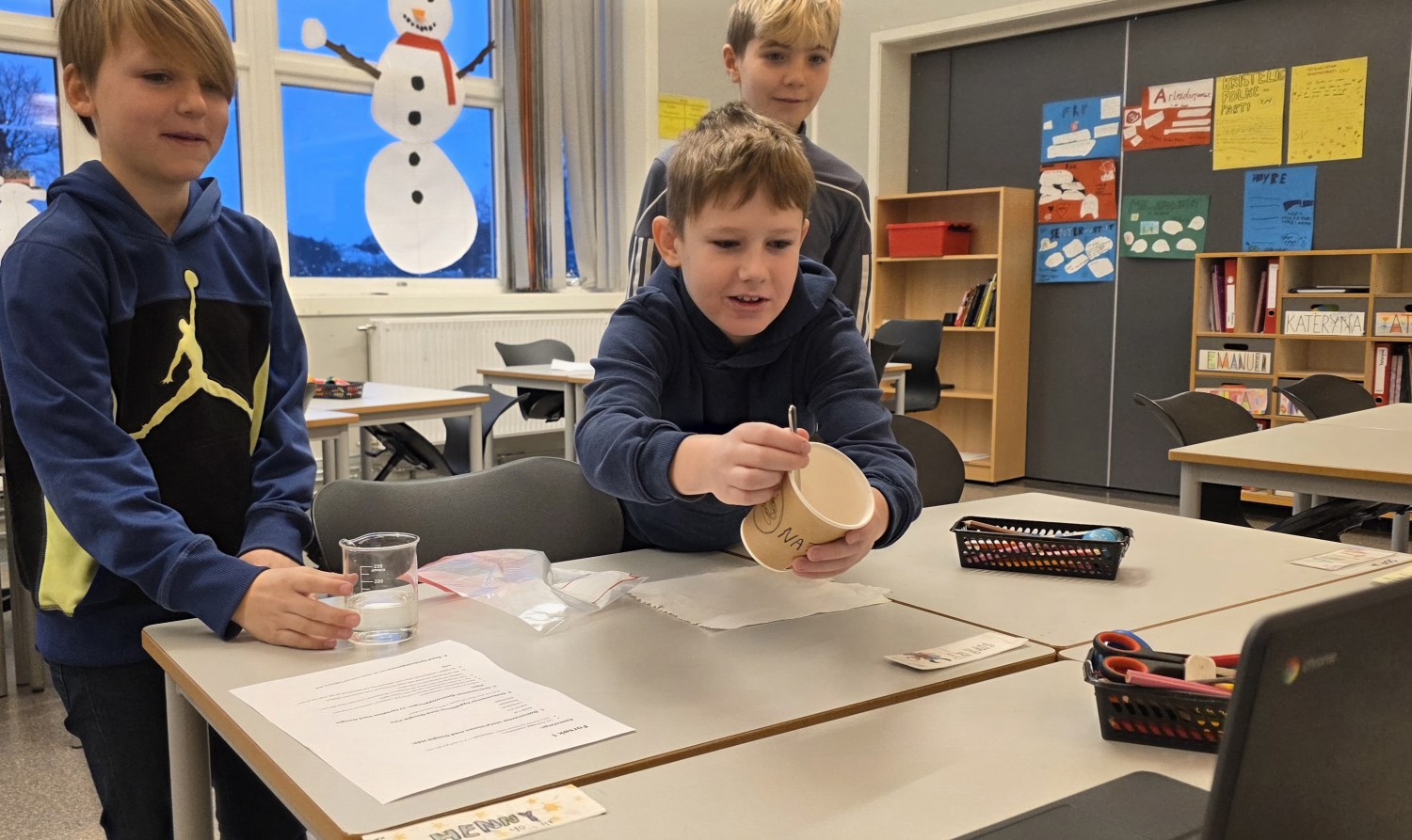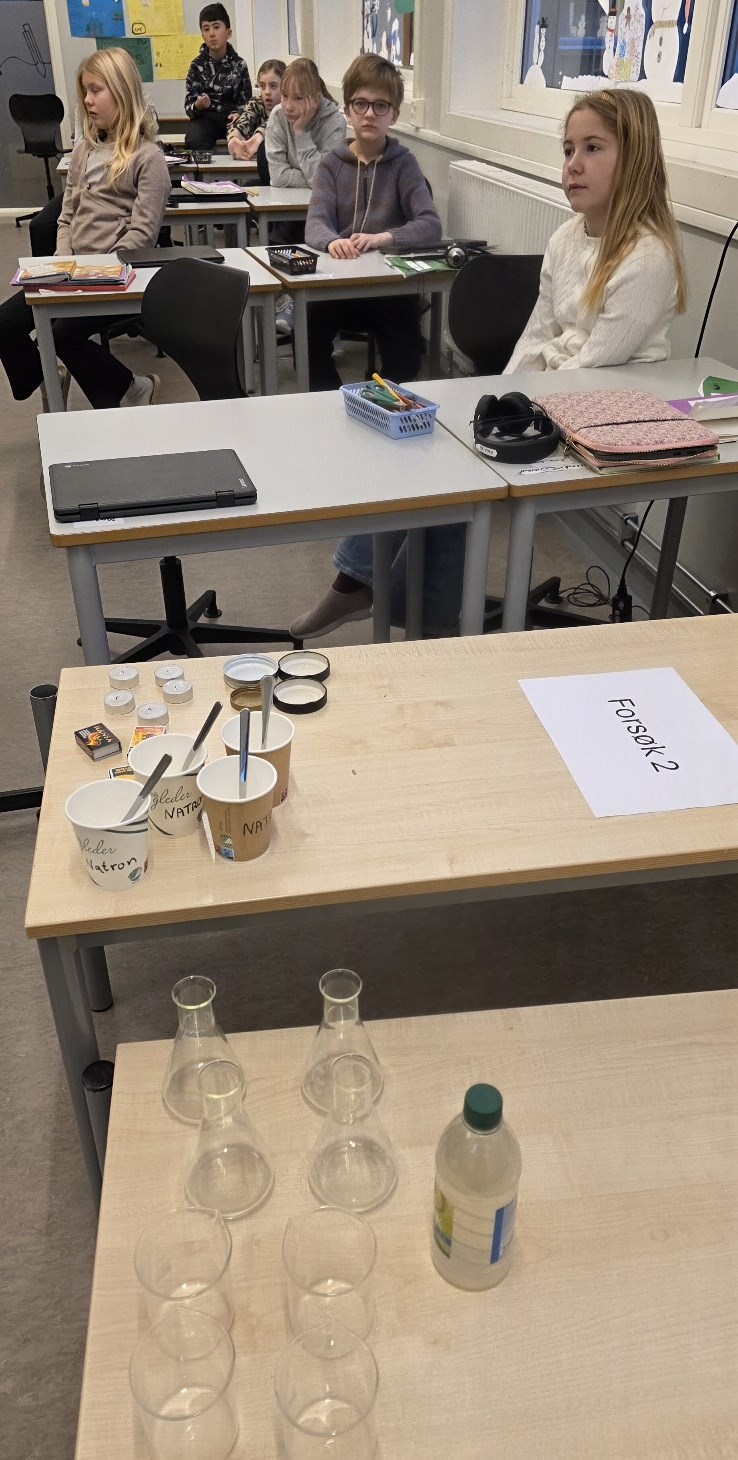 Igjen forsket vi på kjemiske reaksjoner i naturfagstimene gjennom to ulike forsøk. Begge forsøkene dreide seg om reaksjoner med gass, og det var like spennende nå som i desember.