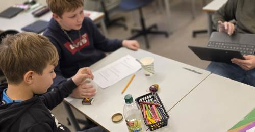 Vi filmet oss selv med Google vids denne gang også, og nå fikk vi det enda bedre til fordi vi hadde gjort det en gang før. Øving gjør mester! Først fortalte vi om utstyret vi skulle bruke før vi lagde hypoteser. Deretter gjennomførte vi forsøket, og fikk et resultat. Det boblet og smalt så vi skvatt, og t-lys ble blåst ut av gassen som oppsto. Til sist skulle vi sende filmen til læreren. Gøy å jobbe sammen. Gøy å undre seg og finne svar.