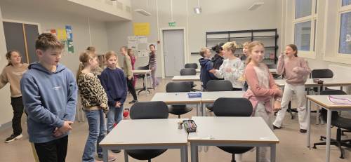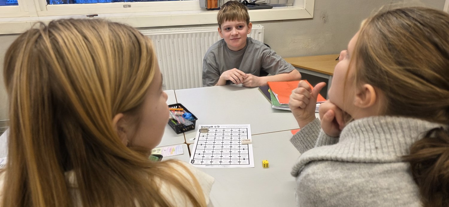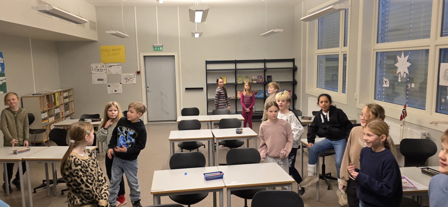 Det siste vi gjorde var spillet "Finn fem"; et spill elevene liker svært godt og som vi også har spilt i en engelsk versjon tidligere. Å skulle finne på fem ting kan være utfordrende, men alle klarte det med glans. F.eks. "Finn fem klesplagg", "Finn fem ord på G".
