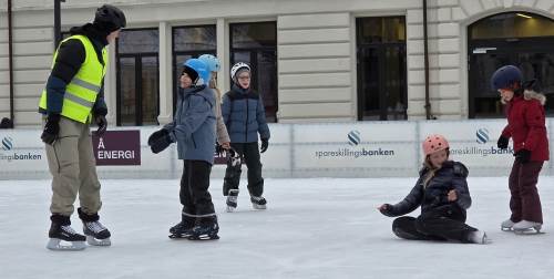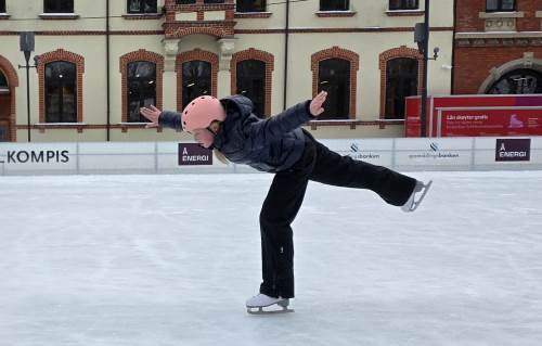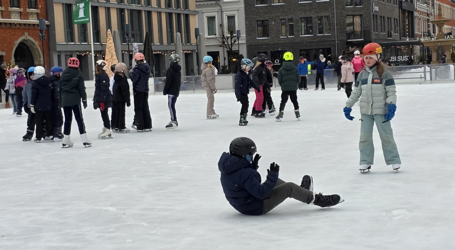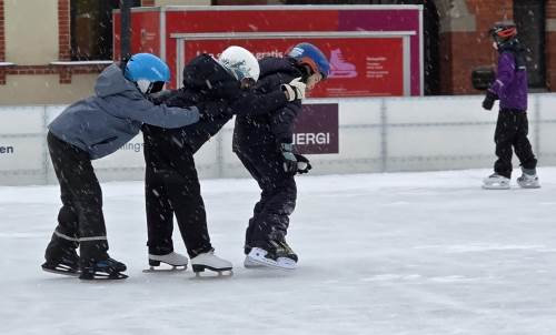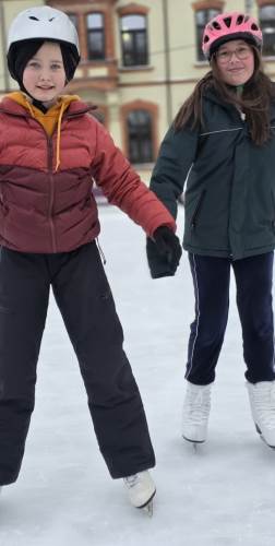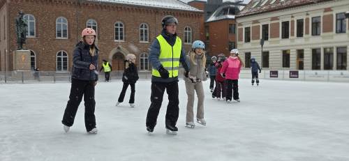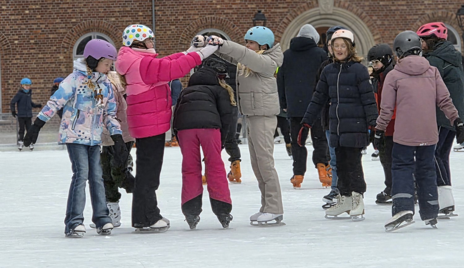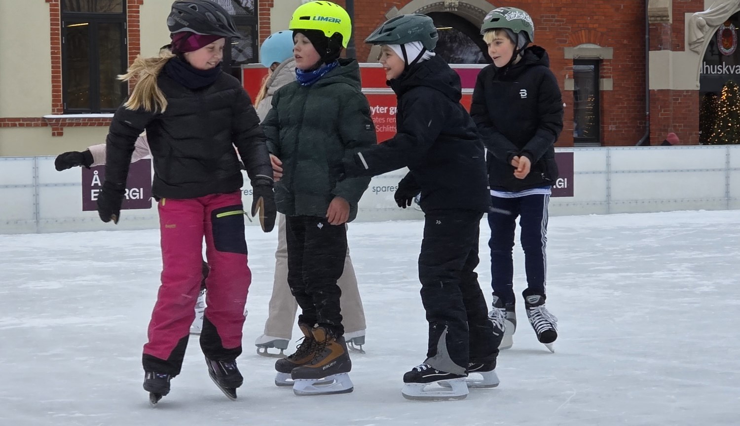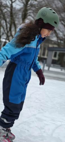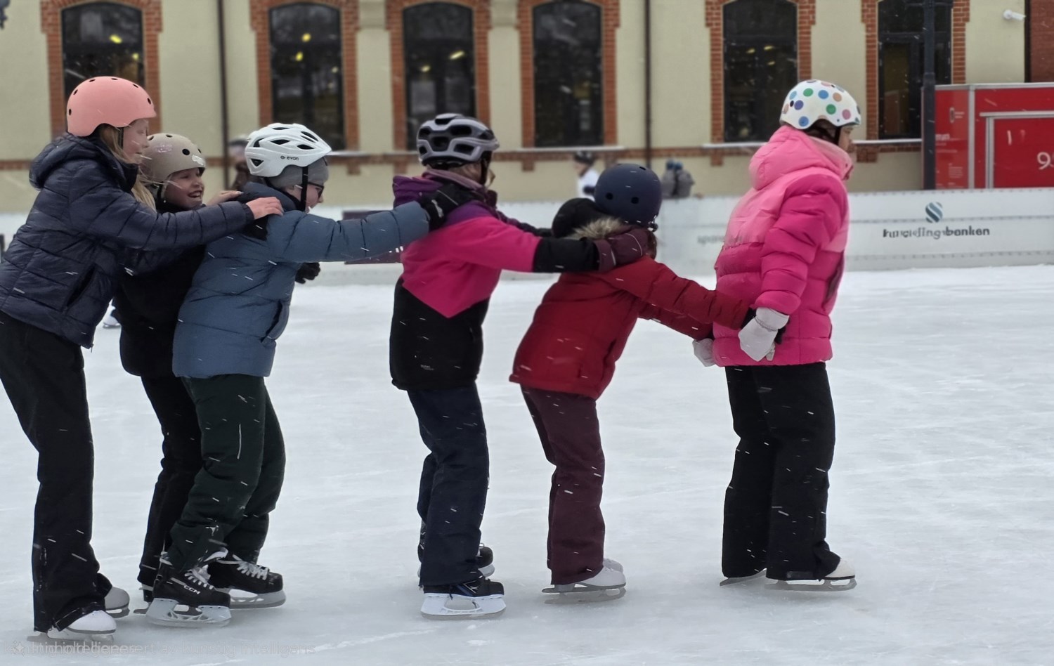 En frisk dag på Kompis med niste og skøyter i vind og snø, og mye fin lek på skøytebanen, "cricket-banen", og i snøhaugen ved siden av for både elever og lærere!