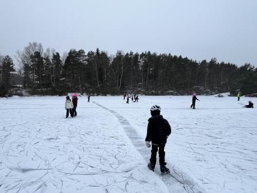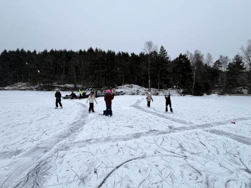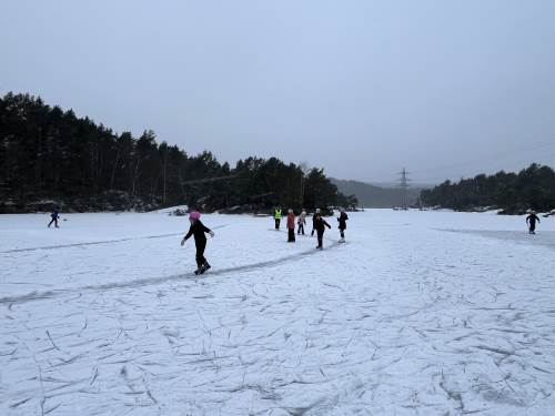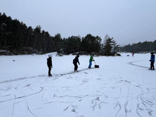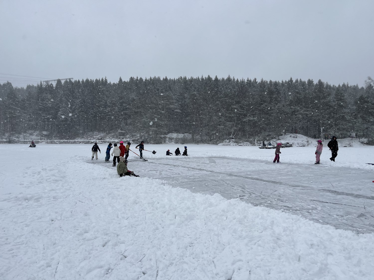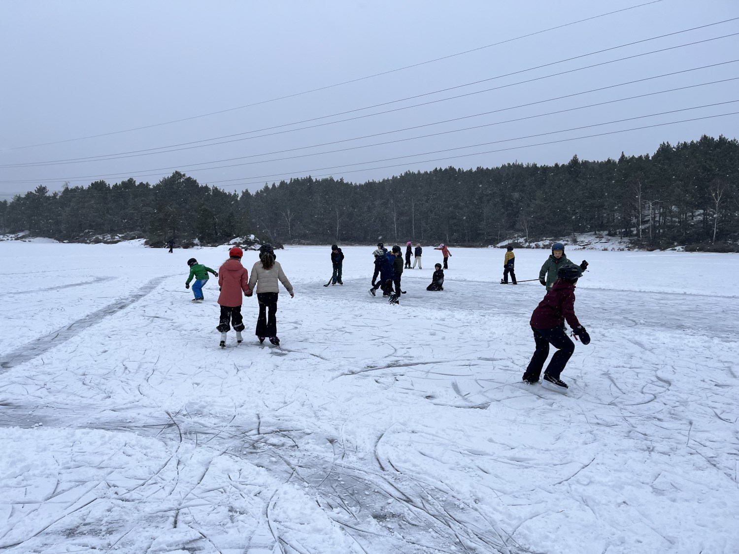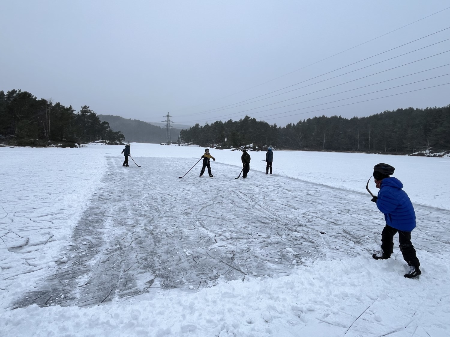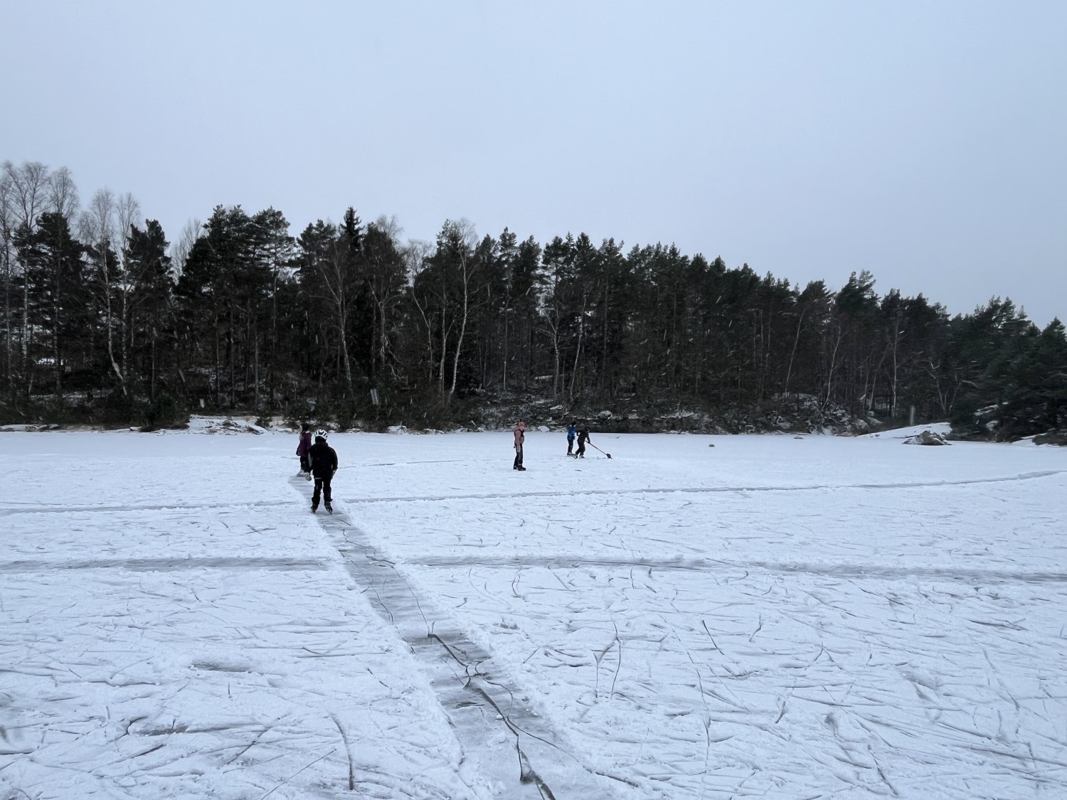 Så deilig å ha så mye plass til å både gå på skøyter og leke på isen.
